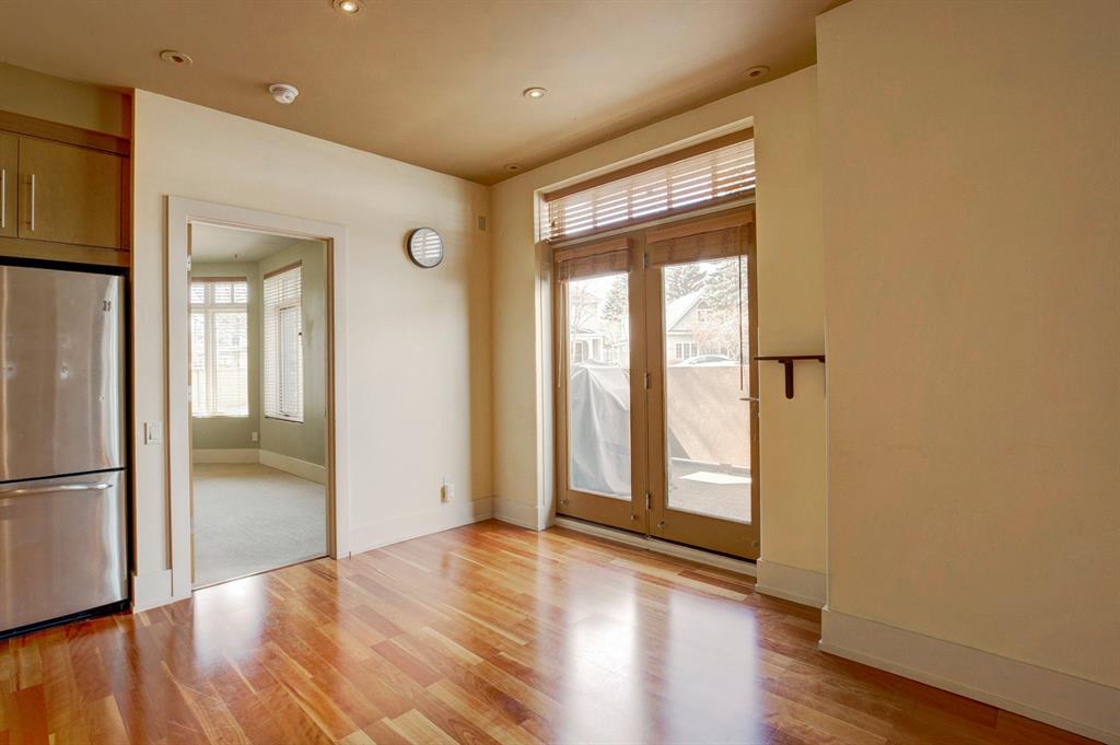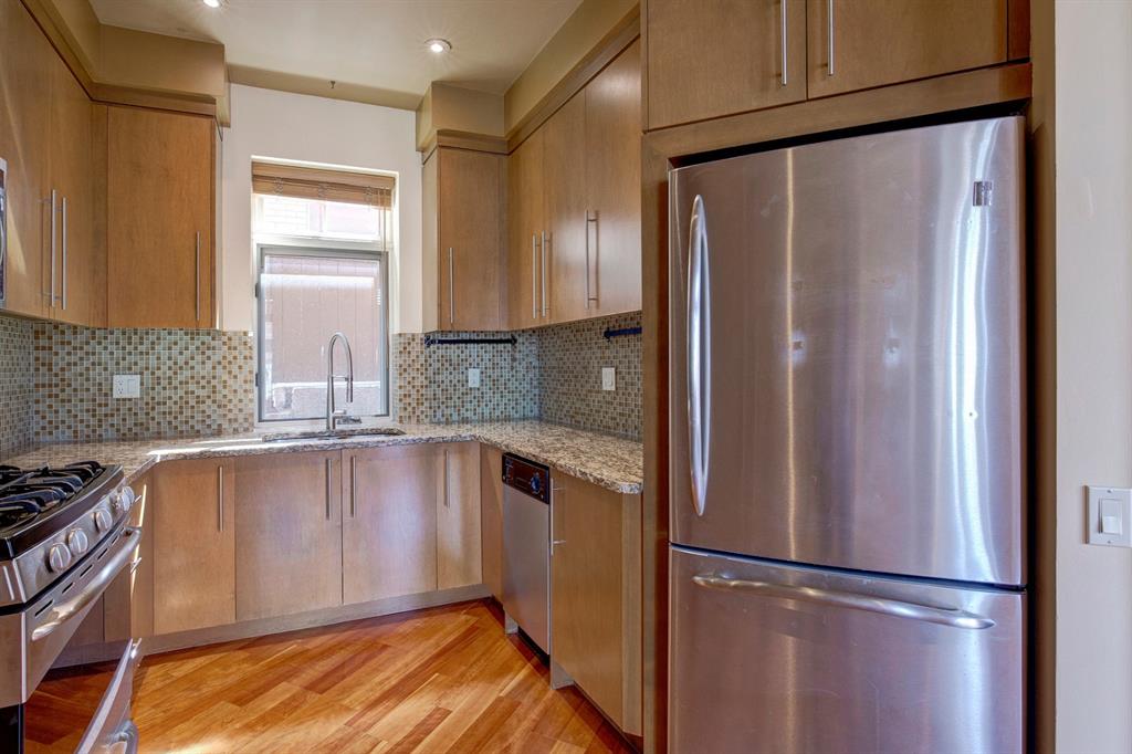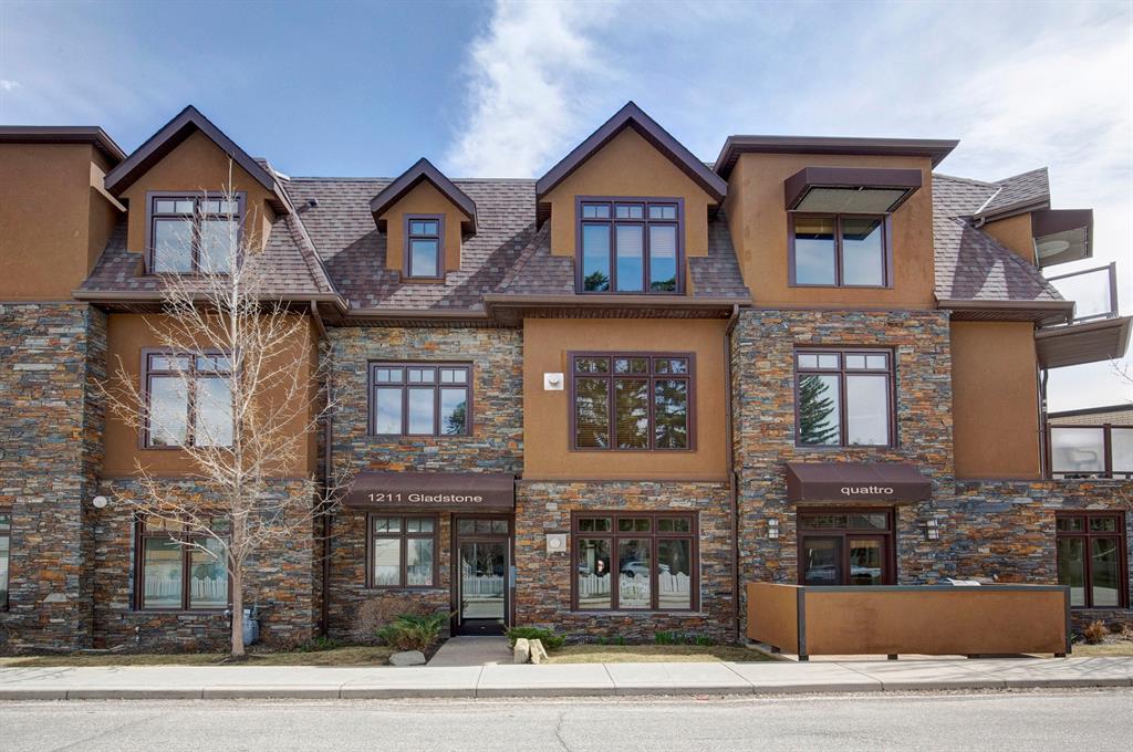 HOME SWEET HOME! Calling all investors, first time home buyers and downsizers! This is your rare opportunity to own a sophisticated, executive 2 bedroom, 2 bathroom condo situated on one of Calgary’s original streets in the heart of historic Kensington! Located in the “Quattro”, this pet friendly (with board approval) , boutique 4 unit complex offers maintenance free condo living while offering many of the perks of owning your own home. Inside you are greeted by the contemporary, European design and open concept layout complete with 9 feet ceilings, hardwood flooring, custom walnut built-ins throughout, air conditioning and luxurious energy efficient features including concrete floors/walls (ICF construction), triple pane windows and geo-thermal energy source for heat, hot water and AC. Additional features include a spacious, sun-drenched living room highlighted by a spectacular, focal point glass tile fireplace and stunning built-in entertainment centre with ample space to accommodate a formal dining room. The gourmet chef’s kitchen includes gleaming granite countertops, stainless steel appliances, stylish backsplash and tons of cabinet space. Completing the unit is a generous sized bedroom with convenient built-ins, 3 piece bathroom, in-suite laundry and the dreamy master retreat with a full wall of custom armoire built-ins and a beautiful 4 piece bathroom. Additional upgrades include a SPACIOUS ATTACHED GARAGE, large patio with gas BBQ line and a large 10’ x 8’ separate, private storage locker directly next to the unit. This self managed complex is in an extraordinary, quiet location just steps to Riley Park, C-train station, Bow River and the pathway system, trendy shopping, pubs, coffee shops, bistros, close to Downtown and all major amenities. This unit is truly a ONE OF A KIND, book your private viewing today!