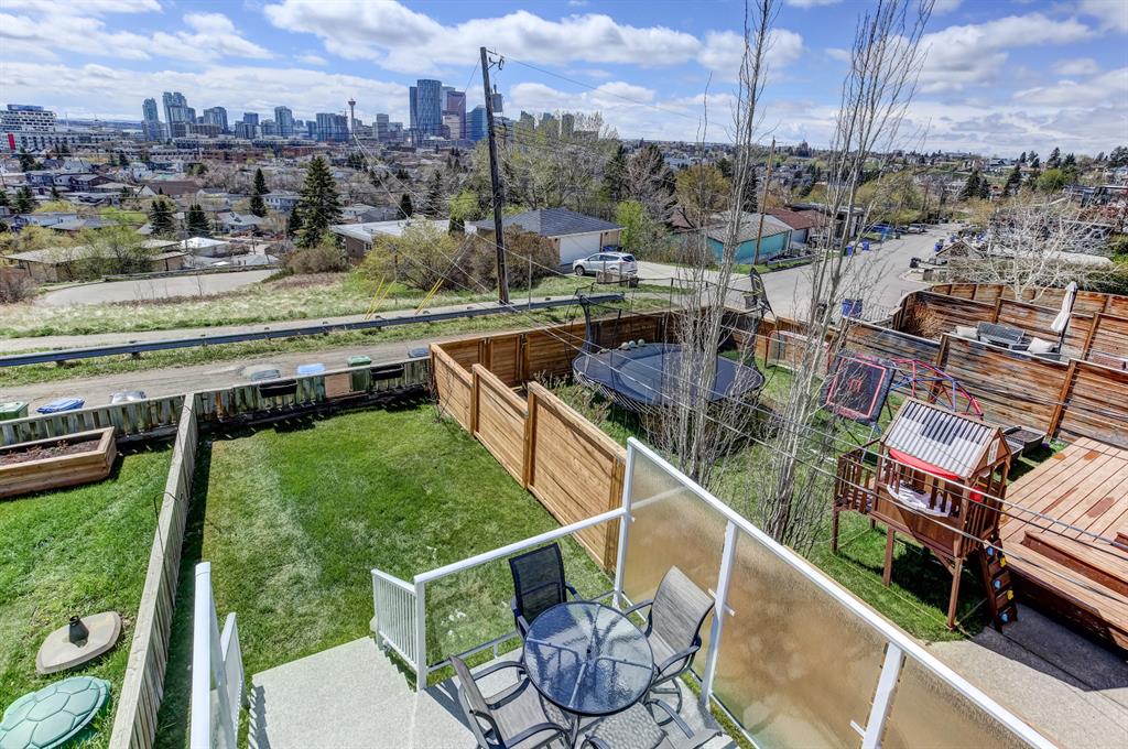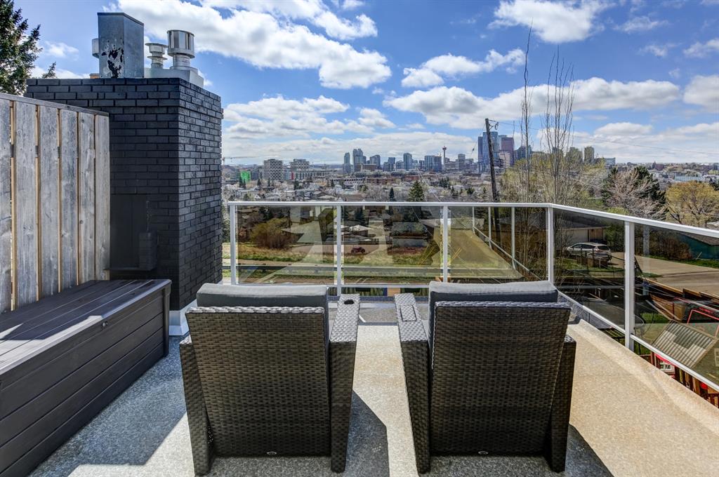 HOME SWEET HOME! If you’re looking for some of the BEST VIEWS you will find in inner-city Calgary, you have come to the right place! Welcome to this extraordinary 2 storey semi-detached home situated in the trendy and sought-after community of Renfrew backing on to a tranquil greenspace with no neighbours behind you. This unique and upgraded home offers 3 bedrooms, 2.5 bathrooms, 1,975+ SQFT of stunning, open concept living space throughout, CENTRAL AIR CONDITIONING and TWO ELEVATED DECKS to bask in your breathtaking, panoramic views of Downtown Calgary’s Skyline and the mountains. Heading inside you will notice the sophisticated hardwood flooring and stylish accents throughout. The main floor offers a 2 piece bathroom, formal dining area, a sun drenched living room with huge windows, a cozy, stone fireplace with a mantle and access to your deck for entertaining and indulging in your dream views. Completing the main floor is a gourmet chef’s kitchen with granite countertops/ peninsula island with a convenient eating bar, premium stainless steel appliances and ample, stylish white cabinetry. The exquisite spiral staircase leads you upstairs which contains your generous sized bedroom with tons of closet space and access to the deck, a gorgeous 4 piece bathroom and the extraordinary master retreat with an entire wall of closet space and access to the deck where you can have a morning coffee while enjoying your views that you can’t get enough of. The fully finished basement has a SAUNA, 3rd bedroom, wonderful 3 piece bathroom, tons of storage space, a laundry room and a massive recreation room ideal for the family with another rustic, stone fireplace with a mantle. Outside there is an attached, heated garage with room for an additional vehicle in the front drive parking space and a fully fenced, massive backyard that offers you a ton of privacy backing on to a greenspace. Steps from all the desirable amenities in the area including walking distance to Downtown Calgary, steps from Bridgeland and all the shopping, restaurants, cafes that it offers, parks, schools, public transportation, Eau Claire, the Bow River and much more. Don’t miss out on this rare opportunity, book your private viewing of this GEM today!