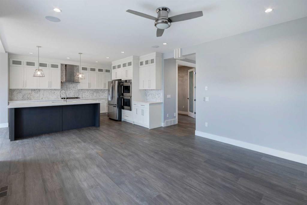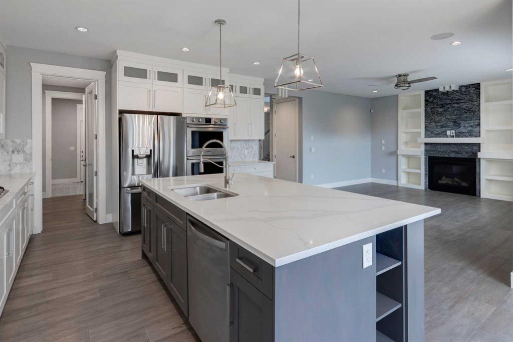 HOME SWEET HOME! Welcome to this extraordinary, custom-built, fully developed and beautifully updated 2 storey family home in the heart of charming Carstairs on a HUGE LOT! This is your opportunity to escape from the big city and enjoy small town living. This contemporary home offers 5 bedrooms, 2.5 bathrooms and 3,359+ SQFT of stunning living space complimented by fresh updates like new paint throughout and a new basement. The flawless open concept main floorplan boasts gleaming new luxury vinyl plank flooring (updated after photos taken), a gorgeous foyer, sun-drenched living room complimented by a modern, floor to ceiling gas fireplace with a mantle and built-in shelving, a spacious formal dining area, convenient mud room, 2 piece vanity bathroom, an office and a gourmet white kitchen showcasing a focal point granite island with built-in shelves, granite countertops, premium stainless steel appliances including a double oven, chic light fixtures, a pantry and a stylish backsplash. Heading upstairs you will find a bonus room with a cozy gas fireplace perfect for entertaining guests and your family, a laundry room, 2 great-sized bedrooms, an exquisite 4 piece bathroom and the magnificent, extremely spacious master retreat with a beautiful built-in headboard and access to your amazing, PRIVATE BALCONY, a walk-in closet perfect for all of your needs and a spa-like 5 piece ensuite bathroom complete with a relaxing jetted tub, private shower and double vanity sinks. The fully finished basement comes with luxury vinyl plank flooring, generous sized 4th and 5th bedrooms, a massive recreation/games room, utility room and ample storage space. Outside, you will find your oversized triple garage and your backyard private oasis backing on to a quiet back alley that is fully fenced, exceptionally manicured and contains a large deck perfect for hosting. This incredible location is close to popular local shops, cafes, schools, parks, soccer fields and pond walking paths, as well as a quick drive to Calgary, Airdrie and Balzac. Don’t miss out on this GEM that offers unbeatable value, book your private viewing today!