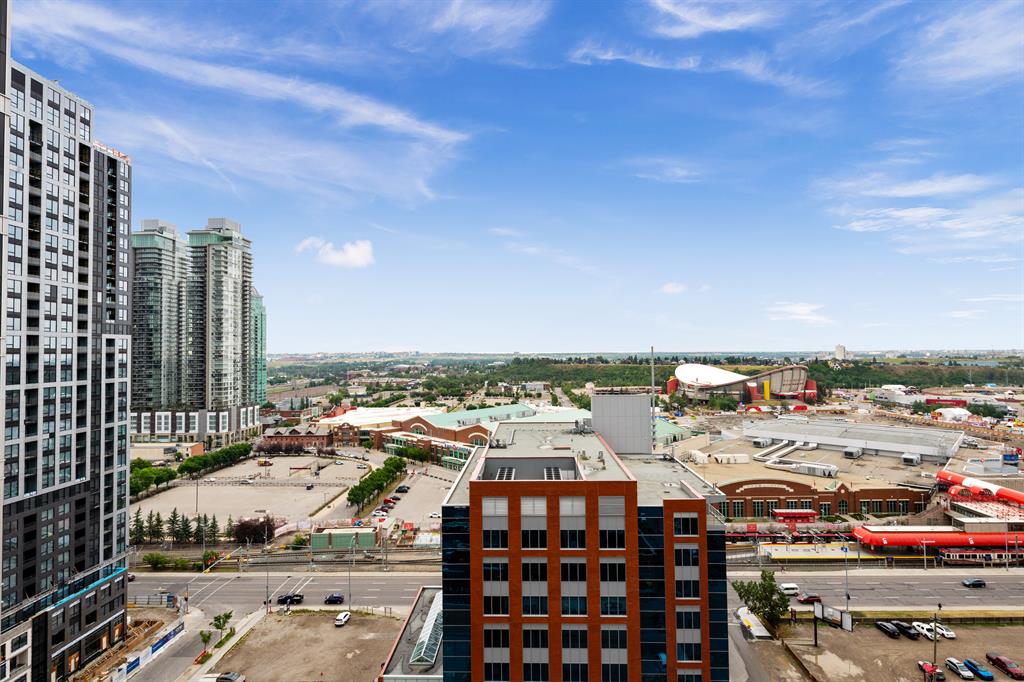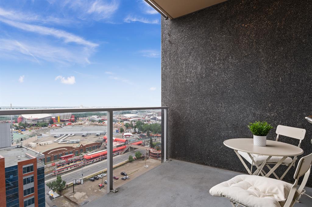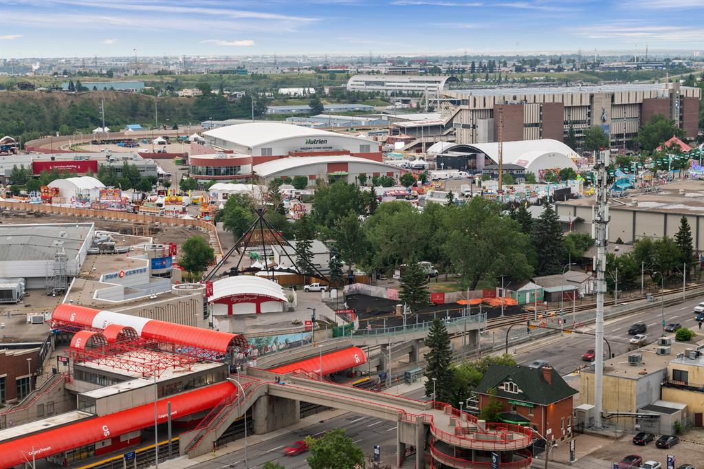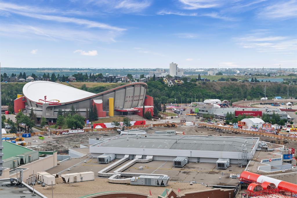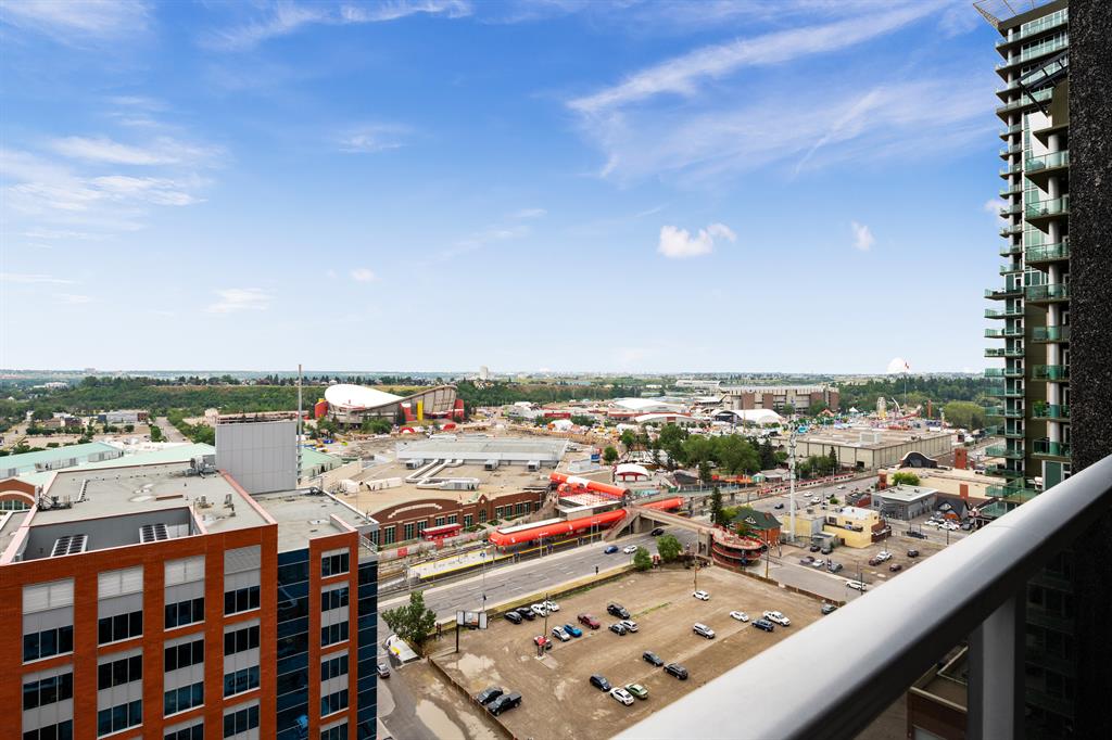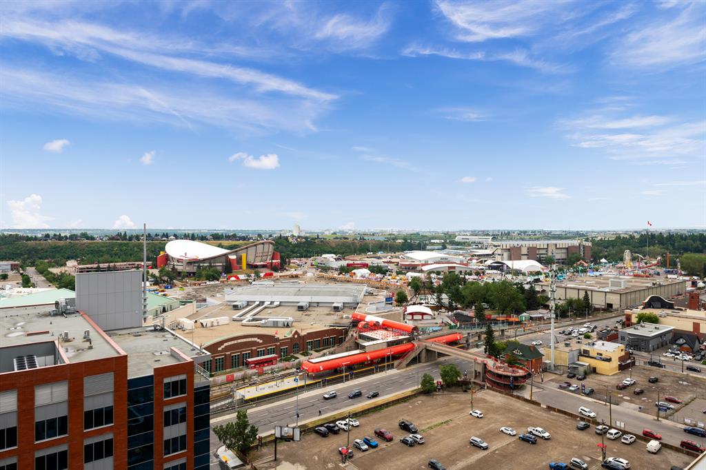 HOME SWEET HOME! VIEWS! VIEWS! VIEWS! Calling all savvy investors and first-time buyers! Bask in contemporary, maintenance free living in this executive condo desirably located in the heart of trendy Victoria Park in Downtown Calgary steps from Stampede Park and the Saddledome in the popular Alura building. This chic, pet friendly condo offers 2 bedrooms, 2 bathrooms, central air conditioning, in-suite laundry, 2 PARKING STALLS and 788+ SQFT of immaculately maintained living space with PANORAMIC, UNOBSTRUCTED VIEWS OF THE CALGARY TOWER, SADDLEDOME, STAMPEDE PARK and DOWNTOWN CALGARY. Heading inside the unit, you will be blown away by the incredible floor plan with 9 foot ceilings and wall to wall, oversized windows drenching the unit in natural sunlight and breathtaking views from literally every inch of the home. Features showcased are the sunny living room, formal dining area/breakfast nook and the gourmet chef’s kitchen highlighted by granite countertops, granite island with a convenient breakfast bar, premium stainless steel appliances, a stylish tile backsplash and spotless white cabinetry. The master bedroom boasts massive floor to ceiling windows showing off your Calgary Tower views, a stunning 4 piece ensuite bathroom and a huge closet, perfect for all of your needs. Completing the unit is a generous sized second bedroom, a gorgeous 3 piece bathroom, in-suite laundry and a massive balcony that’s perfect for BBQ’ing, entertaining before a night out and basking in your Saddledome and Stampede Park views. Also included is two titled, underground, heated, secure parking stalls and a large assigned storage locker. Exclusive amenities in Alura include fitness facilities, bike storage, common outdoor patio, visitor parking and a concierge service. Close to all the Downtown Calgary hot spots you will desire such as bars, restaurants, coffee shops, Sunterra, public transportation, parks, Stampede Park, the Saddledome, the Bow and Elbow River/pathways and major roadways. Don’t miss out on this GEM, book your private viewing today before it’s too late!