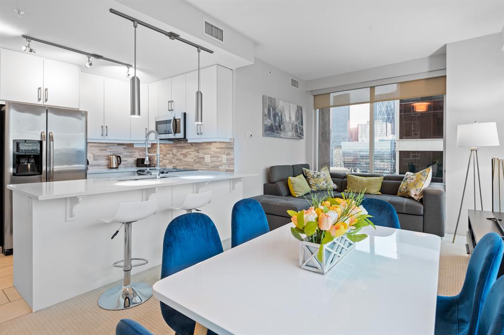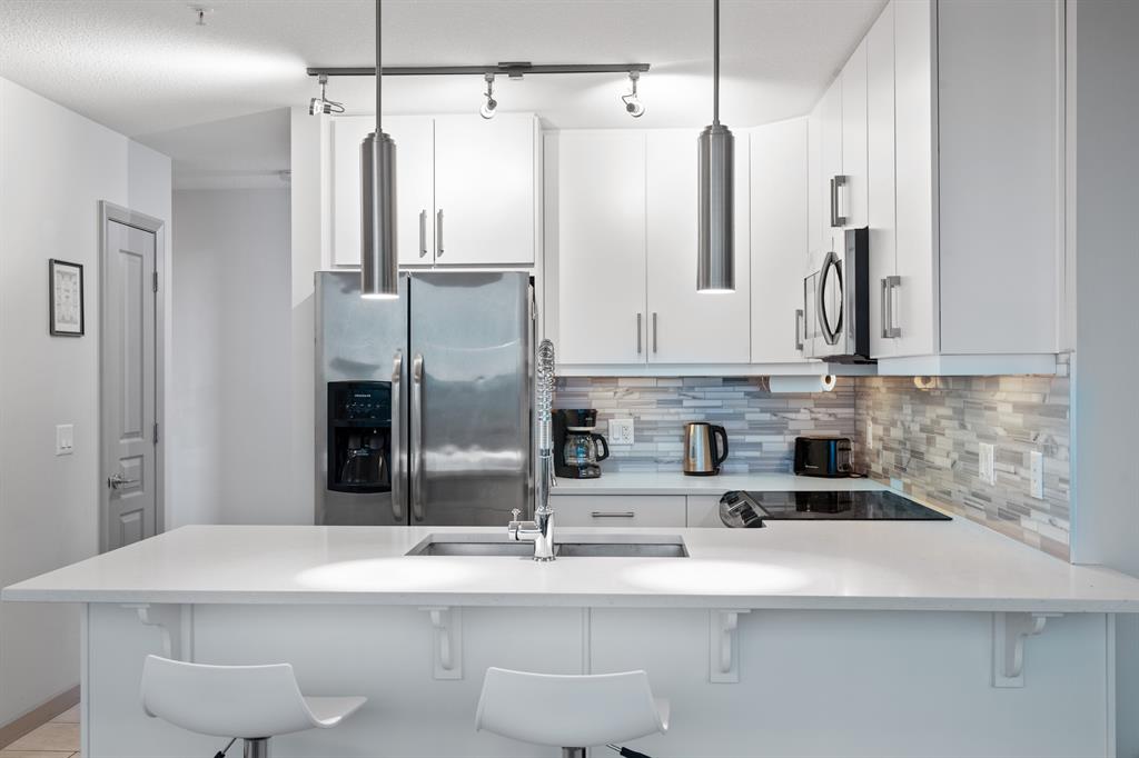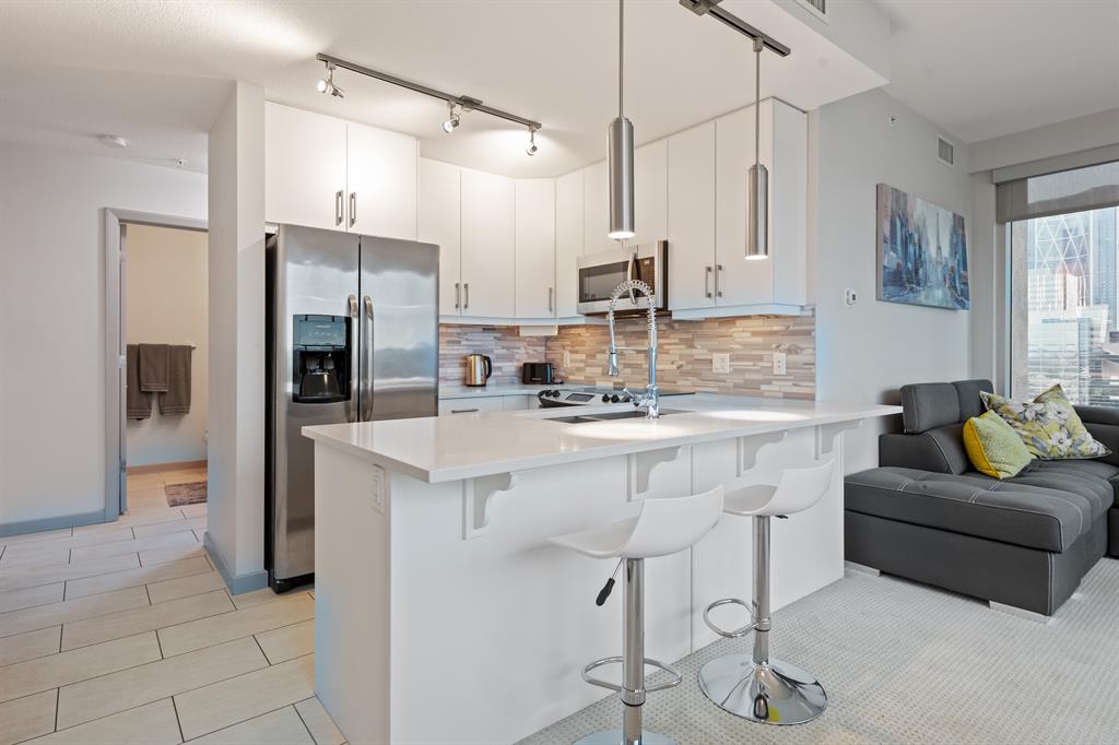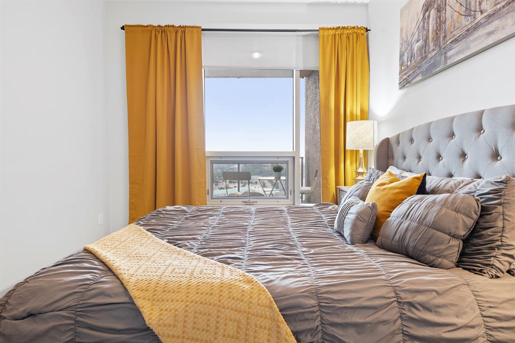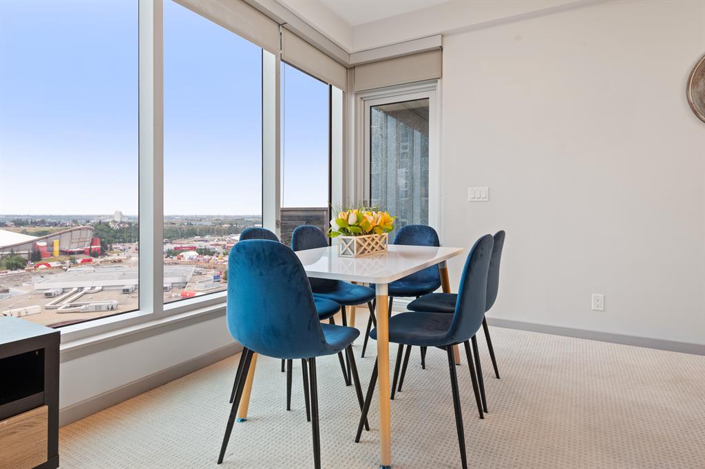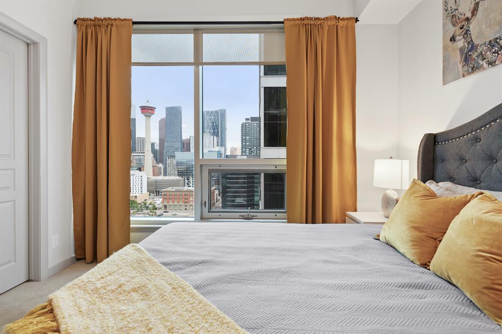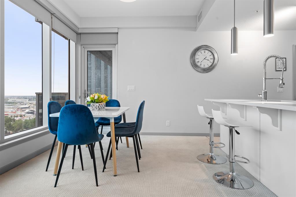 HOME SWEET HOME! VIEWS! VIEWS! VIEWS! Calling all savvy investors and first-time buyers! Bask in contemporary, maintenance free living in this executive condo desirably located in the heart of trendy Victoria Park in Downtown Calgary steps from Stampede Park and the Saddledome in the popular Alura building. This chic, pet friendly condo offers 2 bedrooms, 2 bathrooms, central air conditioning, in-suite laundry, 2 PARKING STALLS and 788+ SQFT of immaculately maintained living space with PANORAMIC, UNOBSTRUCTED VIEWS OF THE CALGARY TOWER, SADDLEDOME, STAMPEDE PARK and DOWNTOWN CALGARY. Heading inside the unit, you will be blown away by the incredible floor plan with 9 foot ceilings and wall to wall, oversized windows drenching the unit in natural sunlight and breathtaking views from literally every inch of the home. Features showcased are the sunny living room, formal dining area/breakfast nook and the gourmet chef’s kitchen highlighted by granite countertops, granite island with a convenient breakfast bar, premium stainless steel appliances, a stylish tile backsplash and spotless white cabinetry. The master bedroom boasts massive floor to ceiling windows showing off your Calgary Tower views, a stunning 4 piece ensuite bathroom and a huge closet, perfect for all of your needs. Completing the unit is a generous sized second bedroom, a gorgeous 3 piece bathroom, in-suite laundry and a massive balcony that’s perfect for BBQ’ing, entertaining before a night out and basking in your Saddledome and Stampede Park views. Also included is two titled, underground, heated, secure parking stalls and a large assigned storage locker. Exclusive amenities in Alura include fitness facilities, bike storage, common outdoor patio, visitor parking and a concierge service. Close to all the Downtown Calgary hot spots you will desire such as bars, restaurants, coffee shops, Sunterra, public transportation, parks, Stampede Park, the Saddledome, the Bow and Elbow River/pathways and major roadways. Don’t miss out on this GEM, book your private viewing today before it’s too late!
