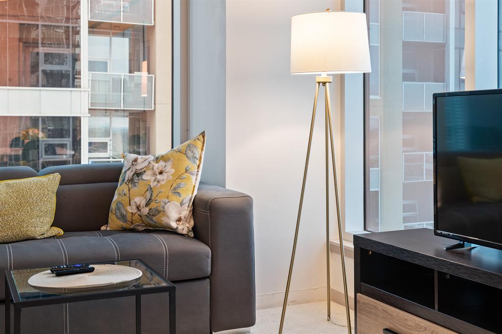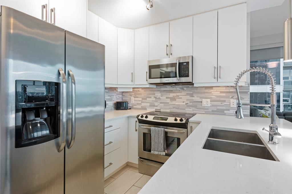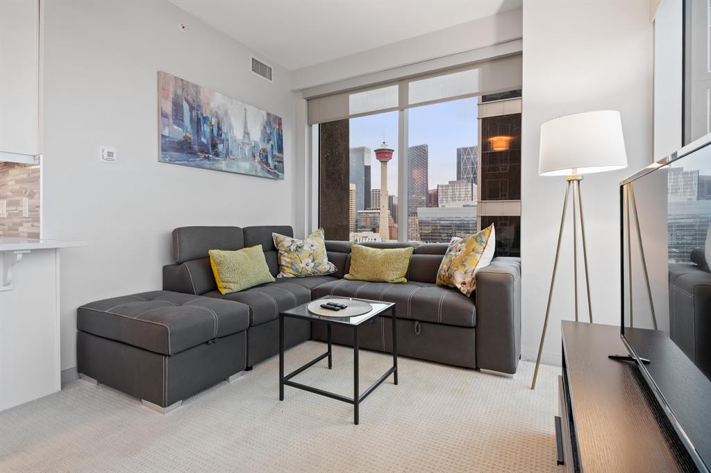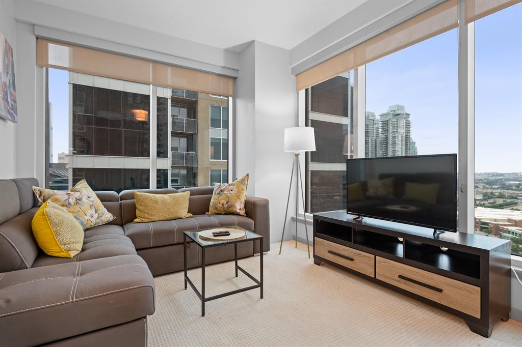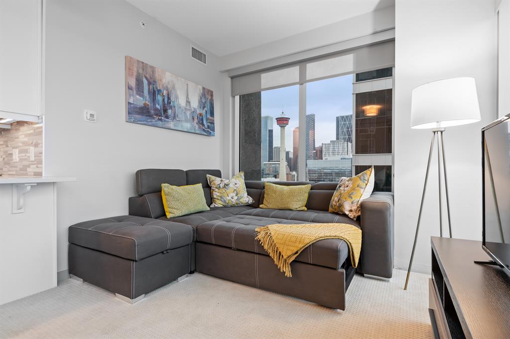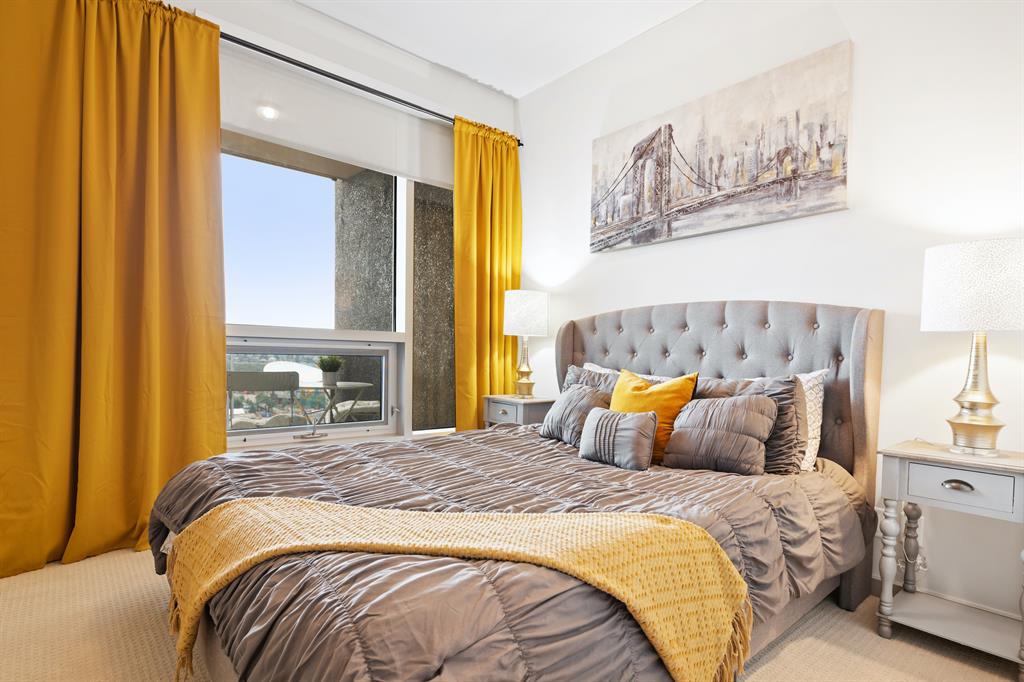 HOME SWEET HOME! VIEWS! VIEWS! VIEWS! Calling all savvy investors and first-time buyers! Bask in contemporary, maintenance free living in this executive condo desirably located in the heart of trendy Victoria Park in Downtown Calgary steps from Stampede Park and the Saddledome in the popular Alura building. This chic, pet friendly condo offers 2 bedrooms, 2 bathrooms, central air conditioning, in-suite laundry, 2 PARKING STALLS and 788+ SQFT of immaculately maintained living space with PANORAMIC, UNOBSTRUCTED VIEWS OF THE CALGARY TOWER, SADDLEDOME, STAMPEDE PARK and DOWNTOWN CALGARY. Heading inside the unit, you will be blown away by the incredible floor plan with 9 foot ceilings and wall to wall, oversized windows drenching the unit in natural sunlight and breathtaking views from literally every inch of the home. Features showcased are the sunny living room, formal dining area/breakfast nook and the gourmet chef’s kitchen highlighted by granite countertops, granite island with a convenient breakfast bar, premium stainless steel appliances, a stylish tile backsplash and spotless white cabinetry. The master bedroom boasts massive floor to ceiling windows showing off your Calgary Tower views, a stunning 4 piece ensuite bathroom and a huge closet, perfect for all of your needs. Completing the unit is a generous sized second bedroom, a gorgeous 3 piece bathroom, in-suite laundry and a massive balcony that’s perfect for BBQ’ing, entertaining before a night out and basking in your Saddledome and Stampede Park views. Also included is two titled, underground, heated, secure parking stalls and a large assigned storage locker. Exclusive amenities in Alura include fitness facilities, bike storage, common outdoor patio, visitor parking and a concierge service. Close to all the Downtown Calgary hot spots you will desire such as bars, restaurants, coffee shops, Sunterra, public transportation, parks, Stampede Park, the Saddledome, the Bow and Elbow River/pathways and major roadways. Don’t miss out on this GEM, book your private viewing today before it’s too late!