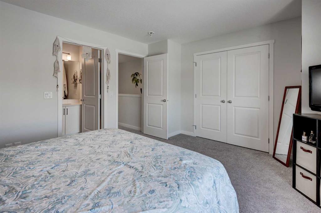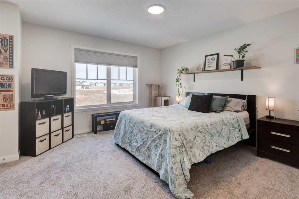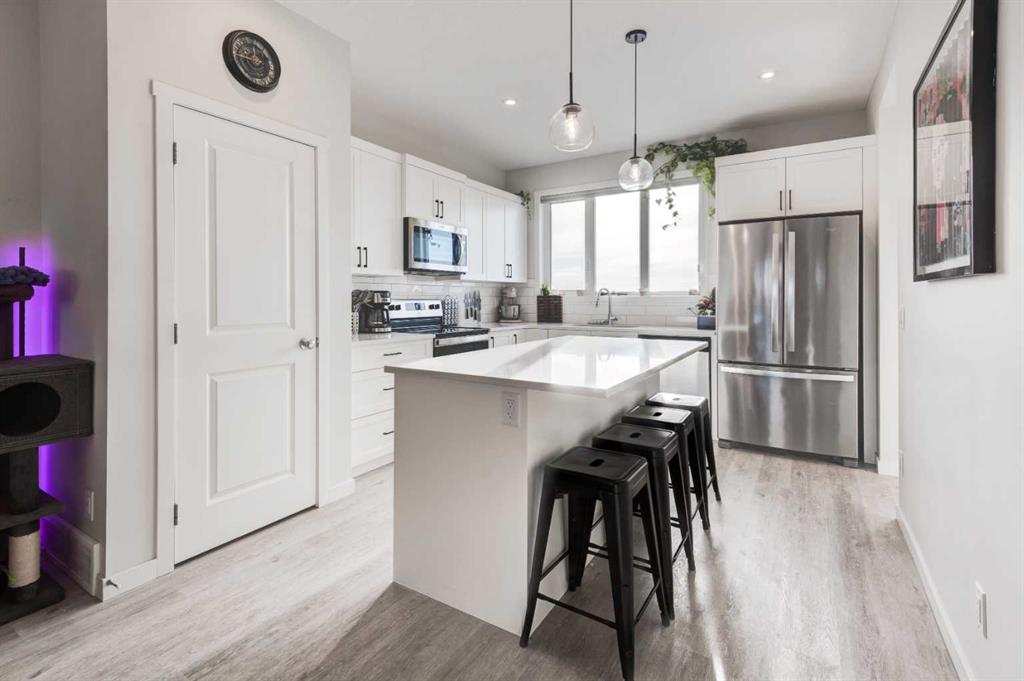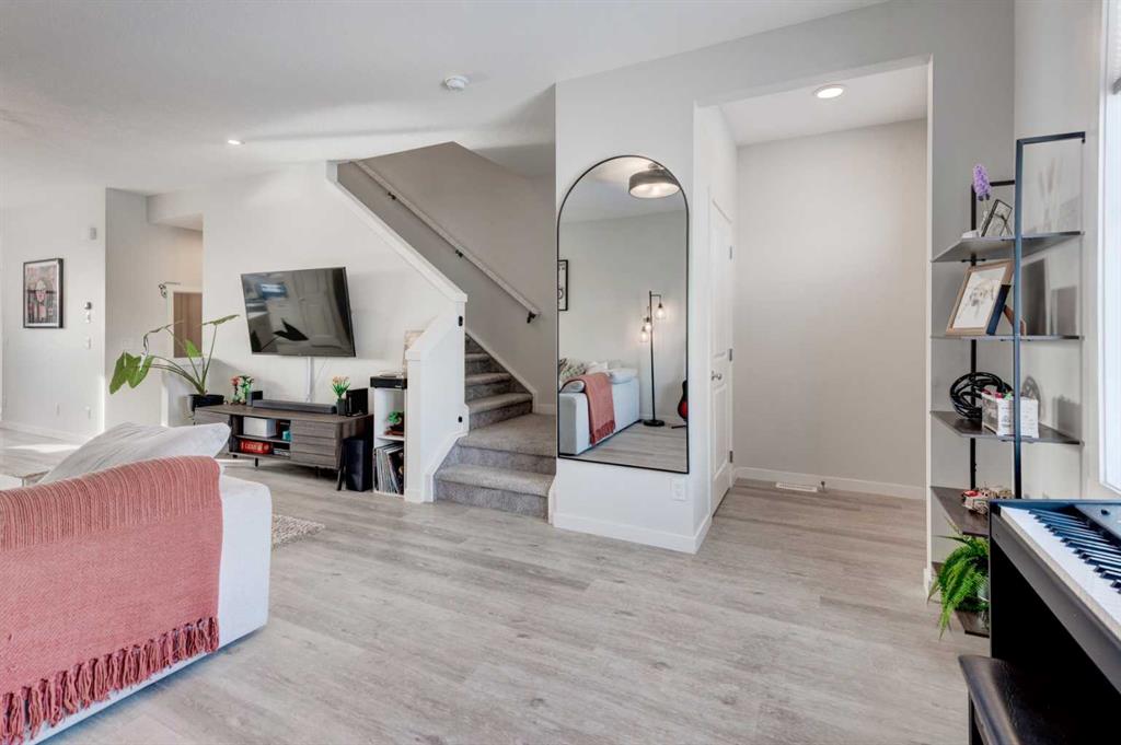 HOME SWEET HOME! Welcome to this beautifully designed CUSTOM-BUILT 2022 SEMI-DETACHED HOME offering modern style, thoughtful finishes, and exceptional community living in one of Southeast Calgary’s most exciting and newer neighborhood’s, Rangeview! This 3 bedroom, 2.5 bathroom home with 1418 spectacular SQFT (above grade) and 672 Developable Basement SQFT, showcases a bright open-concept main floor ideal for both everyday living and entertaining. 9 foot ceilings, stylish designer lighting, and warm wood-tone laminate flooring create a welcoming and contemporary atmosphere, expansive windows flood the living and dining areas with natural light, enhancing the spacious feel throughout. The gourmet chef’s kitchen is both elegant and functional, featuring crisp white cabinetry, quartz countertops, spacious, central quartz island with a breakfast bar and newer, premium stainless steel appliances A convenient 2 piece powder room completes the main level. Upstairs, plush carpeting adds comfort to the private living spaces. The generous primary bedroom easily accommodates a king-sized bed and offers a large closet, a 4-piece spa-like ensuite bathroom, and north-facing windows with city views. Two additional great-sized bedrooms, a full 4-piece bathroom, and a dedicated upper-floor laundry room provide excellent functionality for families or professionals alike. The home is finished in a neutral, modern colour palette, ready for your personal style and décor. The unfinished basement offers you an amazing space to showcase your vision for future development with a roughed-in bathroom and Egress Window. Enjoy added privacy with no rear neighbours, creating a peaceful backyard retreat ideal for relaxing or entertaining. There is also a parking pad that can accommodate at least 2 vehicles. Located in Rangeview, a thoughtfully designed and sustainable community steps from community gardens abundant walking paths, scenic wetlands, beautifully planned parks and green spaces, minutes from the South Health Campus, the largest YMCA in the world, and the vibrant Urban Village offering shopping and dining options. Rangeview offers a lifestyle that blends modern convenience with outdoor living and true neighbourhood charm. Don’t miss out on this GEM, book your private viewing today!