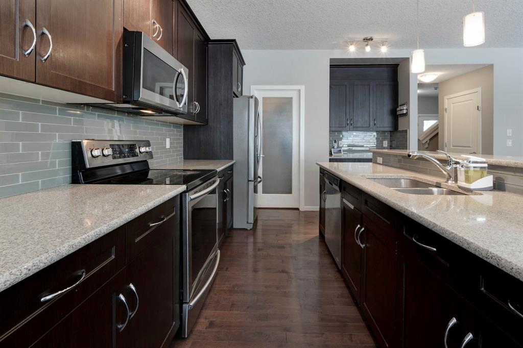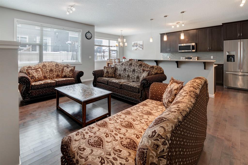 HOME SWEET HOME! Look no further, this is the extraordinary, fully finished family home you have been searching for across from a tranquil greenspace/pond in the sought-after community of Kings Heights in amazing Airdrie! This custom-built home offers 6 bedrooms, 3.5 bathrooms, a fully developed basement with a SEPERATE SIDE ENTRANCE WITH WET BAR, 2,933+ SQFT of luxury living space throughout and an oversized double garage. Heading inside you are greeted by the gleaming main floor hardwood flooring and high 9’ ceilings, the bright foyer, a bedroom, 2 piece bathroom, a sun drenched living room that’s perfectly accented by a cozy gas fireplace, formal dining room and a modern gourmet chef’s kitchen complete with premium stainless steel appliances, granite countertops/ centre island with a raised eating bar, convenient corner pantry and stylish backsplash. Upstairs you will find a laundry room, 3 generous sized bedrooms, one with a large walk-in closet, a 4 piece bathroom and a stunning master retreat with a spa-like 5 piece ensuite with a soaker tub and a walk-in closet with tons of space. The fully developed basement with a convenient side entrance boasts a 4 piece bathroom, a huge recreation room, an AMAZING WET BAR perfect for hosting get-togethers, 6th bedroom, 4 piece bathroom, a sophisticated office and a utility room with tons of storage. Outside there is an oversized, double attached garage with enough space to accommodate a workshop and a massive, fully fenced and landscaped backyard with a spacious deck. This is the perfect location to explore what Airdrie has to offer close to all major amenities including being across from a greenspace/ pond, close to schools, newer shopping area, public transportation, parks, major roadways and a quick drive to Calgary. This gem is a MUST VIEW! Book your private viewing today! Back on market due to buyer not meeting conditions!