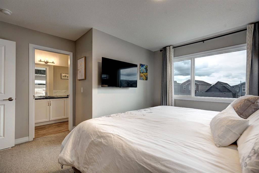 HOME SWEET HOME! Stylish Multi-Level Townhome with a Double Garage, Air Conditioning, Solar Panels and No Condo Fees. Welcome to this rare, NO CONDO FEE, END UNIT Townhome custom built by Jayman that is thoughtfully designed to combine style, privacy, and modern comfort. With central air conditioning, solar panels for energy efficiency, and a double detached garage, this home is move-in ready and full of upgrades. The main living area is bright and open with large windows, a spacious dining area, and a contemporary kitchen featuring quartz countertops, a central island with seating, stainless steel appliances, and plenty of storage. The Upper-Level Master Retreat offers the entire top floor being dedicated to your private sanctuary, complete with a beautiful 5-piece ensuite featuring dual vanities, a stand-alone shower, a deep soaking tub, and a spacious walk-in closet. The second-Level bedroom and bathroom is just below the master, a bright and generously sized bedroom with an oversized window is paired with its own nearby full bathroom which is ideal for guests, teens, or extended family. The Mid-Level Bonus Room offers a smaller private bedroom or office tucked away on its own level, perfect for working from home, hobbies, or additional guest space. Incredible basement potential with the undeveloped basement including a bathroom rough-in, offering future expansion potential to suit your needs. Outdoor and extra features include a fully fenced and landscaped yard, double detached garage, energy-saving solar panels, and the comfort of central air for Calgary’s warm summers. This home’s unique multi-level layout provides personal space for everyone while keeping living areas bright and connected. Located in the vibrant community of Seton, you’re just minutes from shopping, restaurants, parks, and the South Health Campus. Book your private viewing of this GEM today! NOTE – SETON COMMUNITY HAS NOT STARTED COLLECTING a HOA YET.