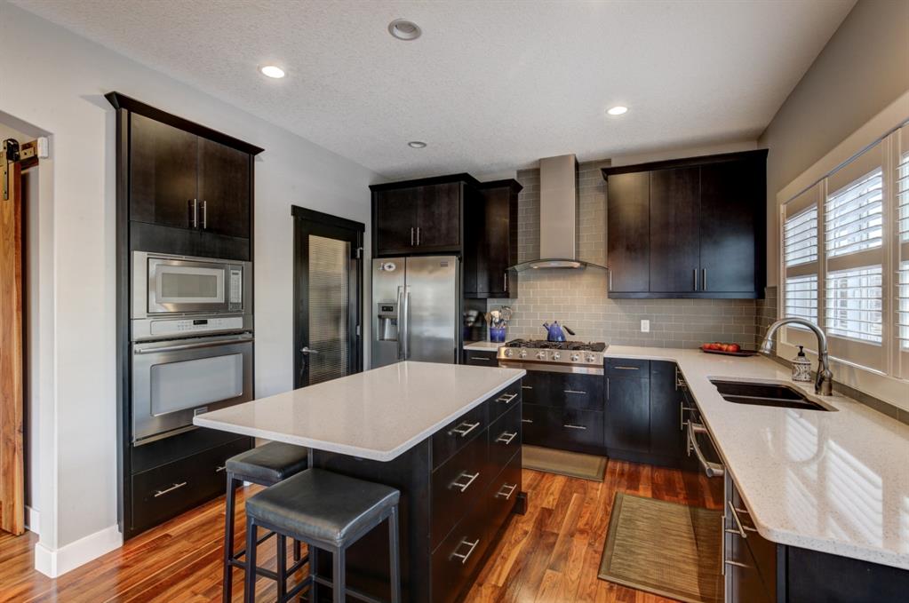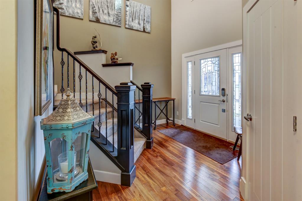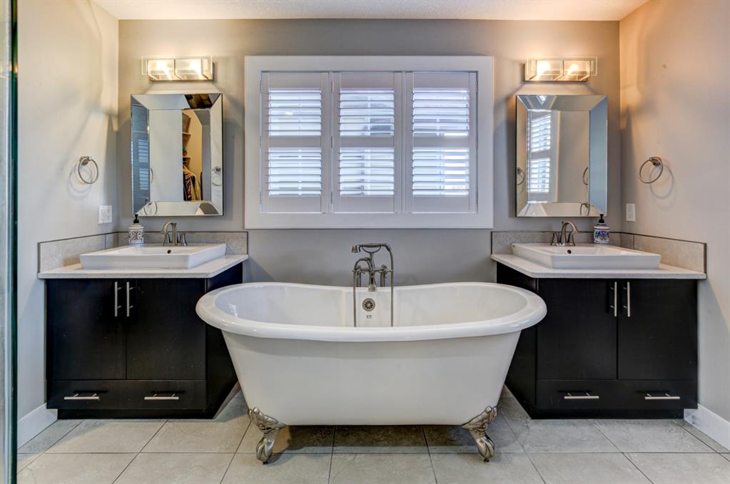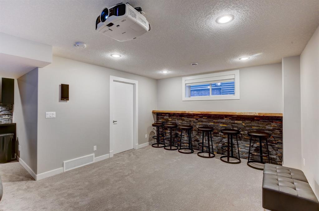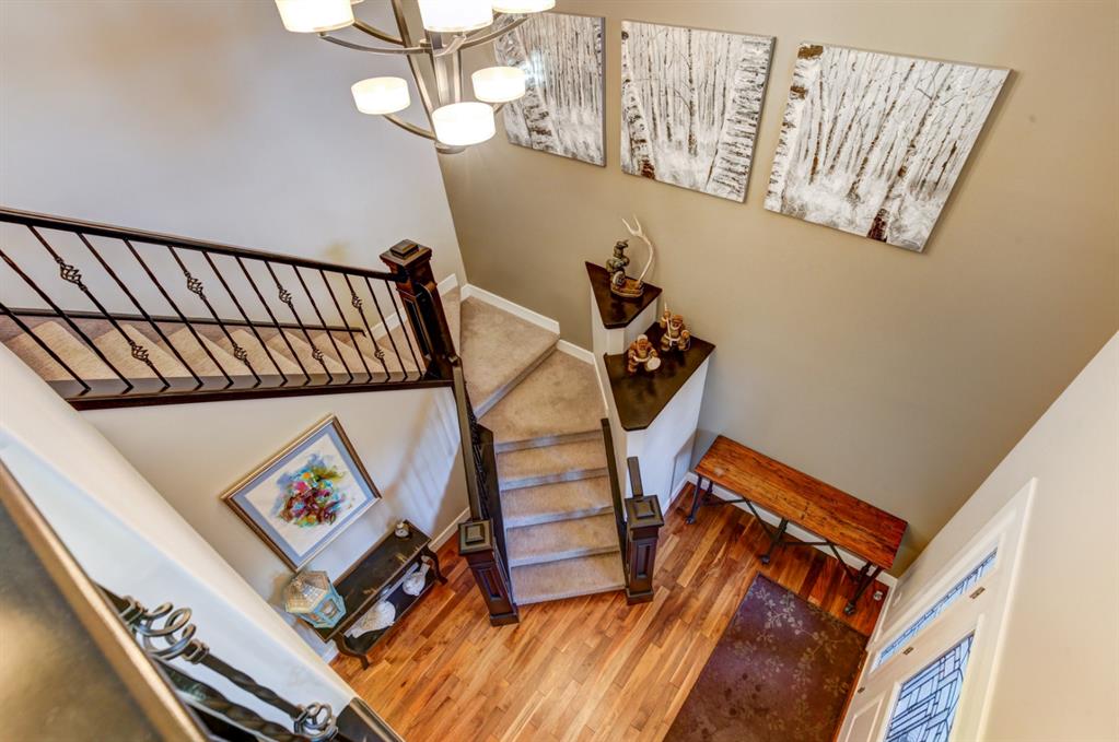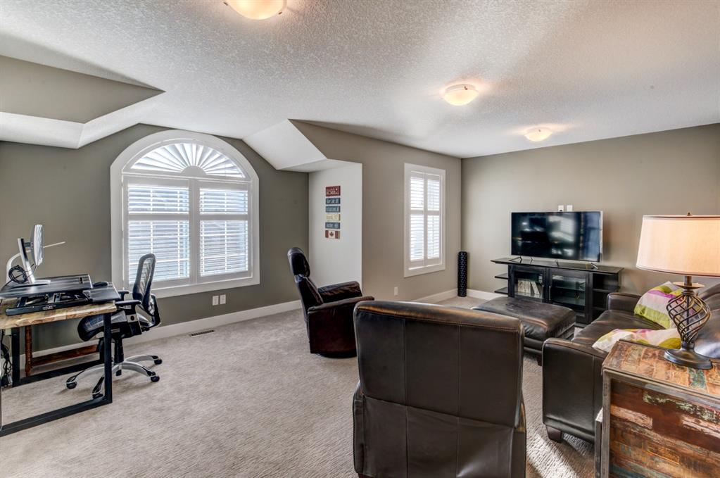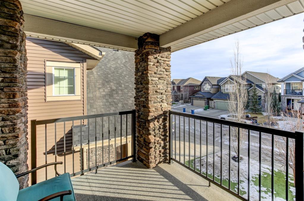 HOME SWEET HOME! Look no further, this is the extraordinary, custom-built (Mckee Homes) 2 storey family home you have been searching for backing on to a pristine greenspace in the coveted community of Coopers Crossing in Airdrie! Indulge in luxury living in this stunning home located on a pie lot offering 4 bedrooms, 3.5 bathrooms, a spacious, oversized double garage, amazing curb appeal and 3,189 SQFT of immaculately maintained living space loaded with pride of ownership throughout. Heading inside you are greeted by a bright foyer with high ceilings, den/dining room with a dry bar, office/ den with wooden french doors and a unique stone wall accent with built-in shelving (authentic solid wood slab), sun drenched family room with a spectacular tile gas fireplace, a gourmet open plan kitchen complete with ebony cabinetry, quartz countertops, center island with a breakfast bar, convenient pantry and a premium stainless steel appliance package including a built-in oven and gas cooktop, large mud room and 2 piece bath. Upstairs is complete with 2 generous sized bedrooms, a large, bright bonus room with a work space with access to a private, covered balcony with duro-deck, laundry room, a wonderful 4 piece bathroom and the magnificent master retreat with a walk-in closet with ample built-in shelving and a dreamy spa-like 5 piece en-suite with a stand alone shower and a relaxing soaker tub. The fully developed basement offers a media room with a built-in theatre with a projection screen, entertainment system and reclining chairs, an incredible wet bar with a keg tap, ice maker and wine fridge, 4th bedroom, a gorgeous 3 piece bathroom with heated floors and utility room with tons of storage space. Additional highlight features includes a built-in speaker system, upgraded lighting fixtures, a double, oversized, heated garage that has a lot of storage space and a pully system and a fenced backyard with low maintenance landscaping (lawn turf and cement firepit) backing on to a pristine greenspace and walking path to the school. Wonderful access to explore Airdrie. Close to all major amenities such as a newer elementary school, newer shopping area, public transportation, parks, major roadways and a quick drive to Calgary. This gem is a MUST VIEW! Book your private viewing today!