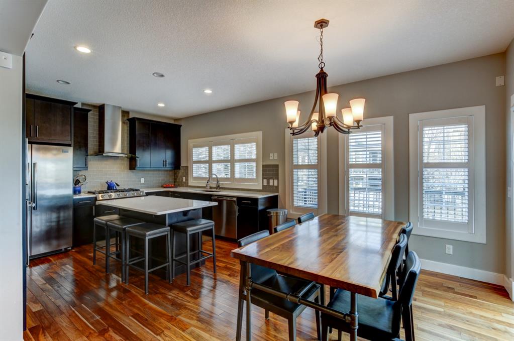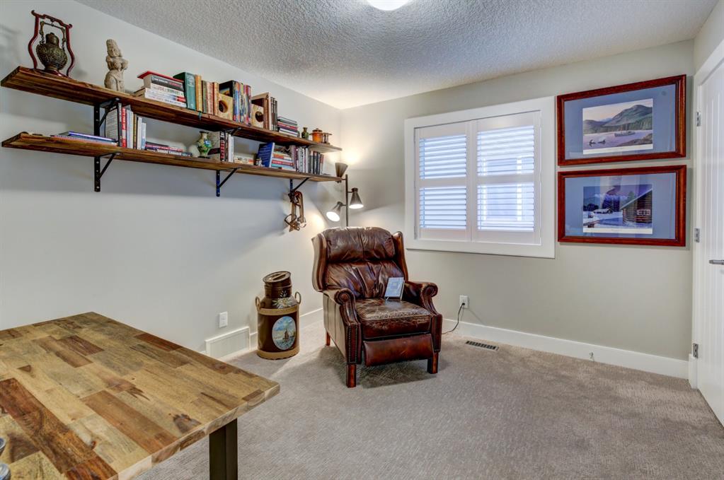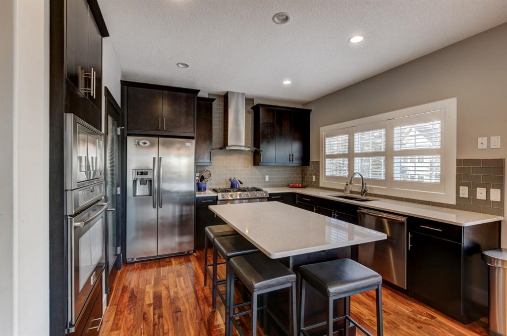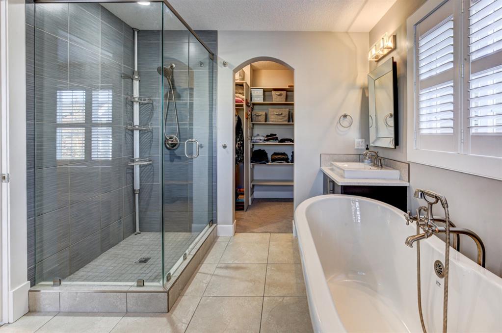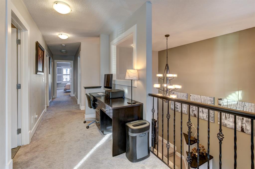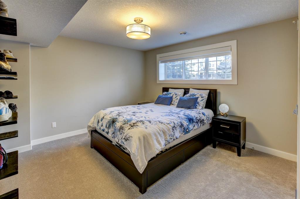 HOME SWEET HOME! Look no further, this is the extraordinary, custom-built (Mckee Homes) 2 storey family home you have been searching for backing on to a pristine greenspace in the coveted community of Coopers Crossing in Airdrie! Indulge in luxury living in this stunning home located on a pie lot offering 4 bedrooms, 3.5 bathrooms, a spacious, oversized double garage, amazing curb appeal and 3,189 SQFT of immaculately maintained living space loaded with pride of ownership throughout. Heading inside you are greeted by a bright foyer with high ceilings, den/dining room with a dry bar, office/ den with wooden french doors and a unique stone wall accent with built-in shelving (authentic solid wood slab), sun drenched family room with a spectacular tile gas fireplace, a gourmet open plan kitchen complete with ebony cabinetry, quartz countertops, center island with a breakfast bar, convenient pantry and a premium stainless steel appliance package including a built-in oven and gas cooktop, large mud room and 2 piece bath. Upstairs is complete with 2 generous sized bedrooms, a large, bright bonus room with a work space with access to a private, covered balcony with duro-deck, laundry room, a wonderful 4 piece bathroom and the magnificent master retreat with a walk-in closet with ample built-in shelving and a dreamy spa-like 5 piece en-suite with a stand alone shower and a relaxing soaker tub. The fully developed basement offers a media room with a built-in theatre with a projection screen, entertainment system and reclining chairs, an incredible wet bar with a keg tap, ice maker and wine fridge, 4th bedroom, a gorgeous 3 piece bathroom with heated floors and utility room with tons of storage space. Additional highlight features includes a built-in speaker system, upgraded lighting fixtures, a double, oversized, heated garage that has a lot of storage space and a pully system and a fenced backyard with low maintenance landscaping (lawn turf and cement firepit) backing on to a pristine greenspace and walking path to the school. Wonderful access to explore Airdrie. Close to all major amenities such as a newer elementary school, newer shopping area, public transportation, parks, major roadways and a quick drive to Calgary. This gem is a MUST VIEW! Book your private viewing today!