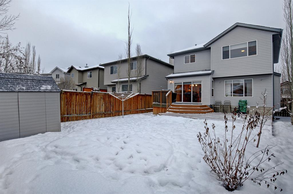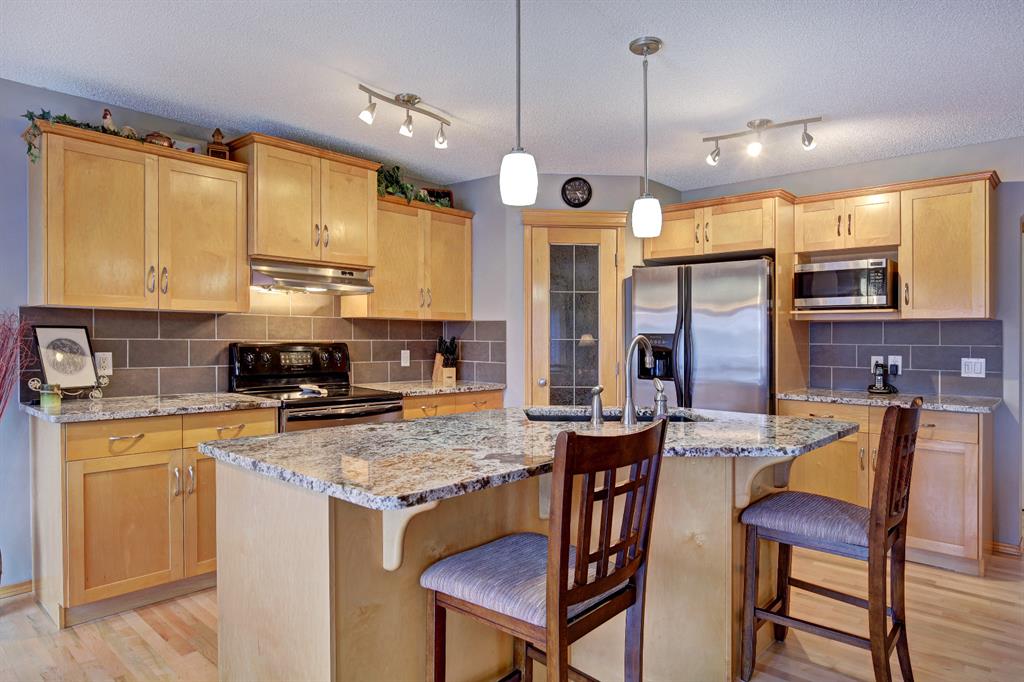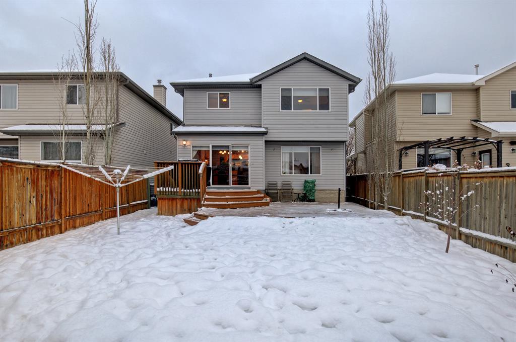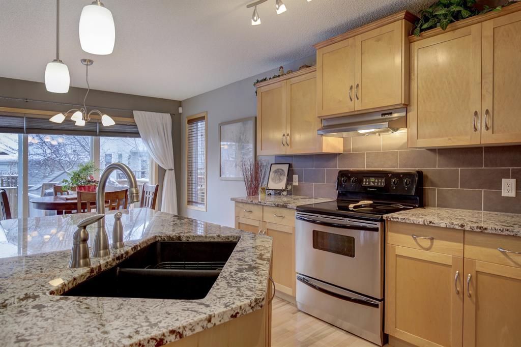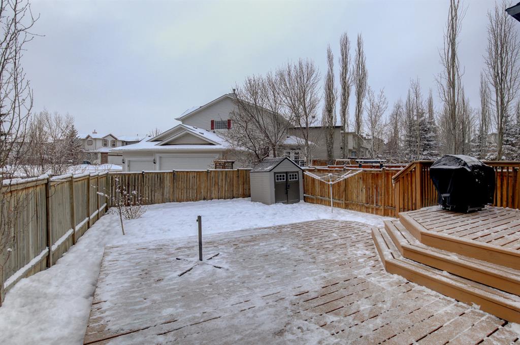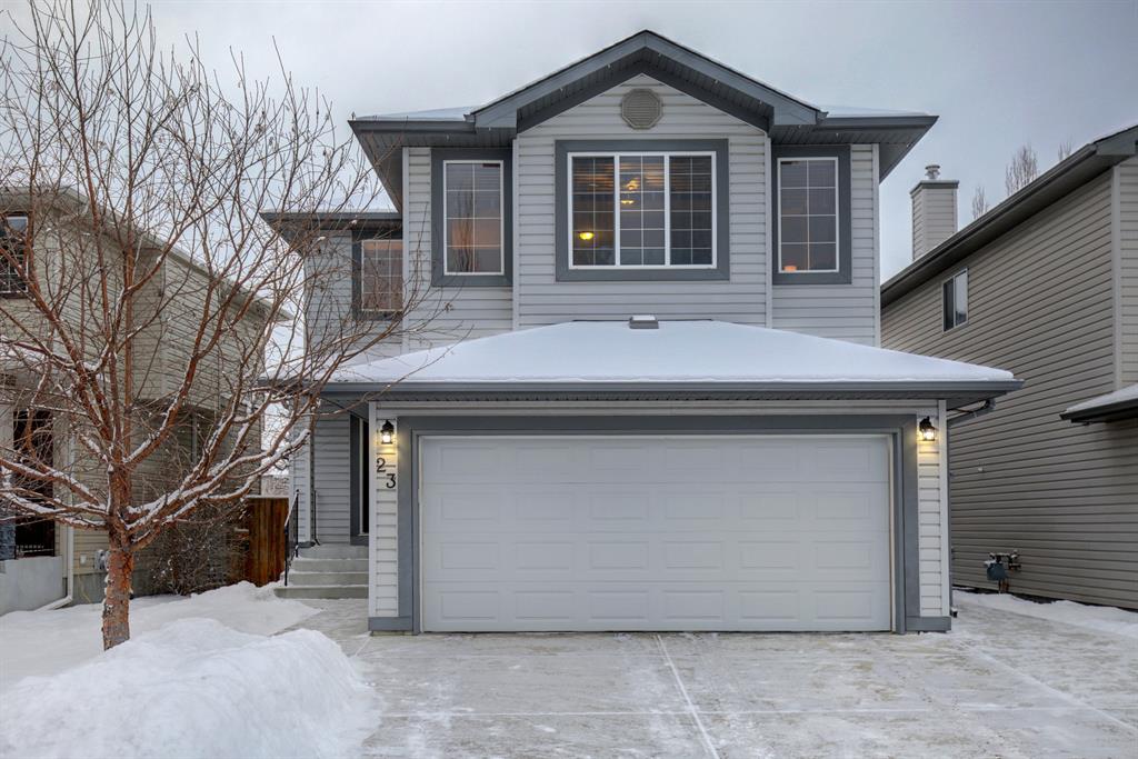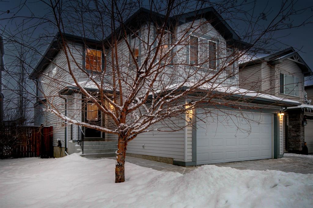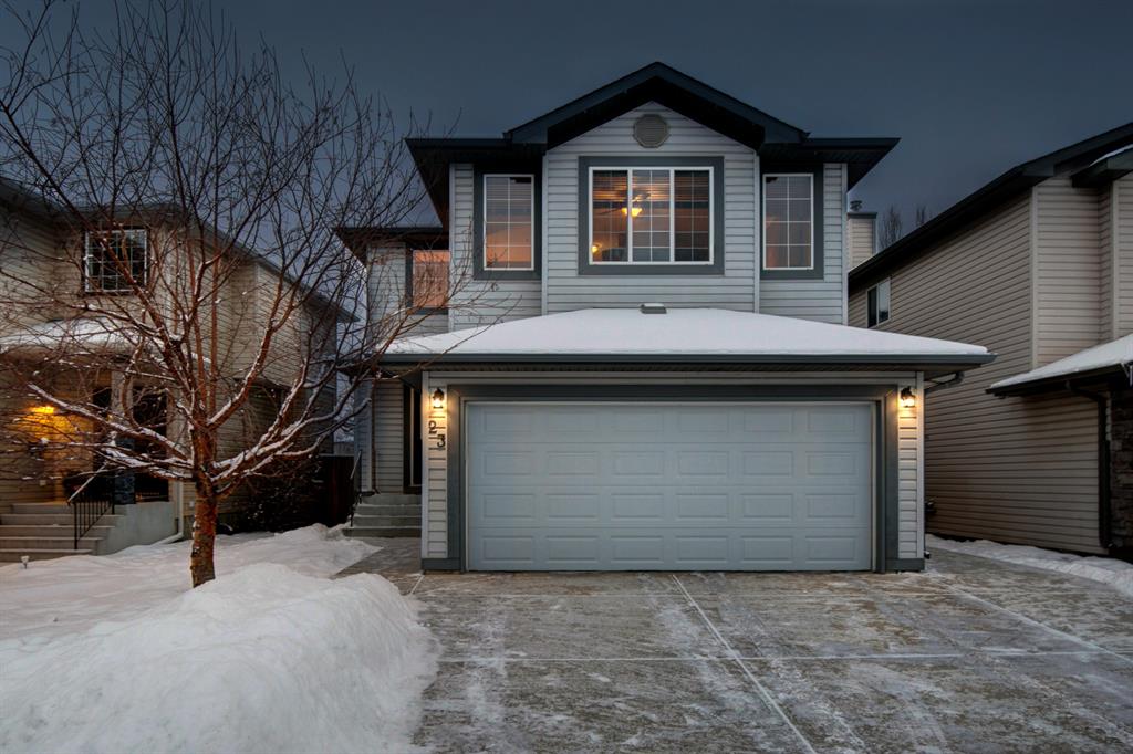 HOME SWEET HOME! Welcome to this terrific, exquisitely upgraded 2 storey home situated on a spacious lot on a desirable, family friendly cul-de-sac in the sought-after community of Tuscany! This stylish, fully developed home offers 4 bedrooms, 3.5 bathrooms, central air conditioning and 2,605 SQFT of stunning, contemporary living space. Inside, you are greeted by the sunny living room highlighted by a focal point gas fireplace with mantle, 2 piece bathroom, formal dining room and a laundry room with built-in cabinets. The gourmet chef’s kitchen features gleaming granite countertops/ beautiful center island with room for seating, maple cabinetry, stainless steel appliances and a convenient, walk-in corner pantry. Upstairs, you will find a versatile bonus room/ family room perfect for entertaining, 3 generous sized bedrooms and a 4 piece bathroom. The dreamy king sized master retreat comes complete with a beautiful wall accent feature, massive walk-in closet perfect for all your needs, and a spa-like 4 piece ensuite highlighted by a huge, cozy soaker tub. Both upper levels have maple hardwood flooring. The fully finished basement boasts a recreation/ media room with custom built-ins niches, spacious 4th bedroom and full bathroom. Completing this home is new shingles (2019), new furnace (2018) and an oversized double garage with a workbench/ workshop area, high ceilings, side door access and tons of storage space. The large, fully fenced yard with a 2 tiered deck is roughed in for a hot tub and gives you all the privacy that you desire. Desirably located with MOUNTAIN and COP views, close to a bus stop/ LRT, schools, shopping, parks& major roadways. MUST VIEW! Call today for your private viewing!