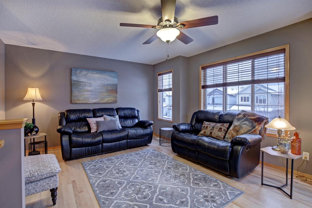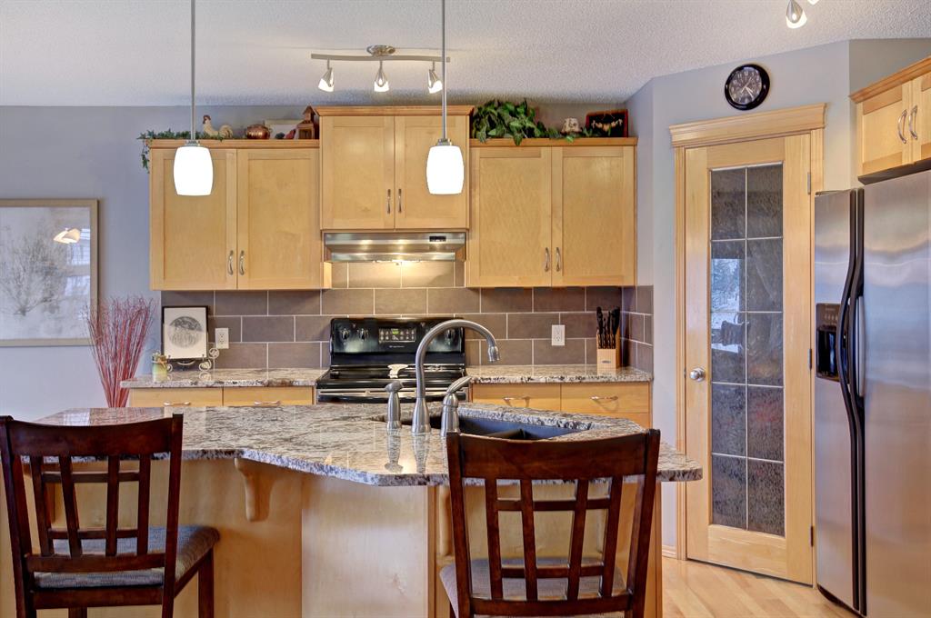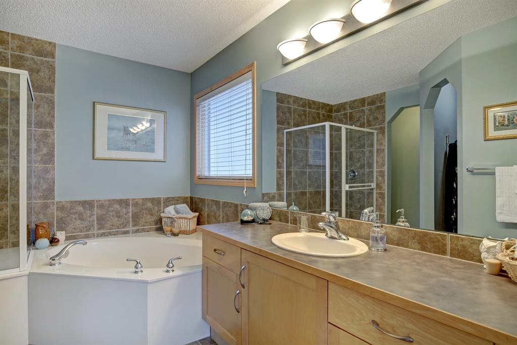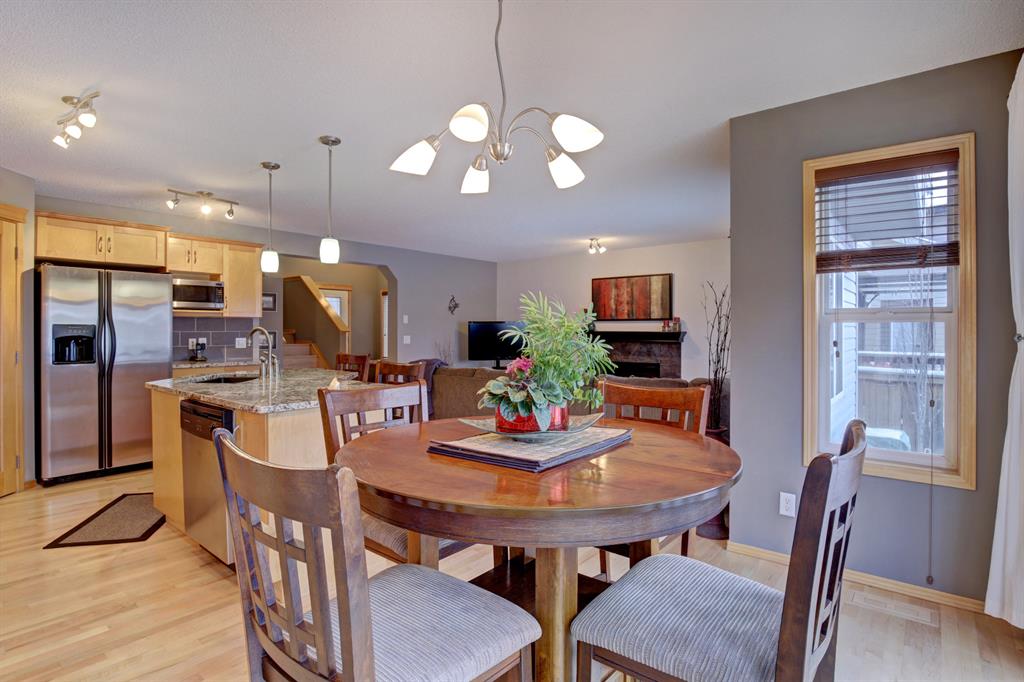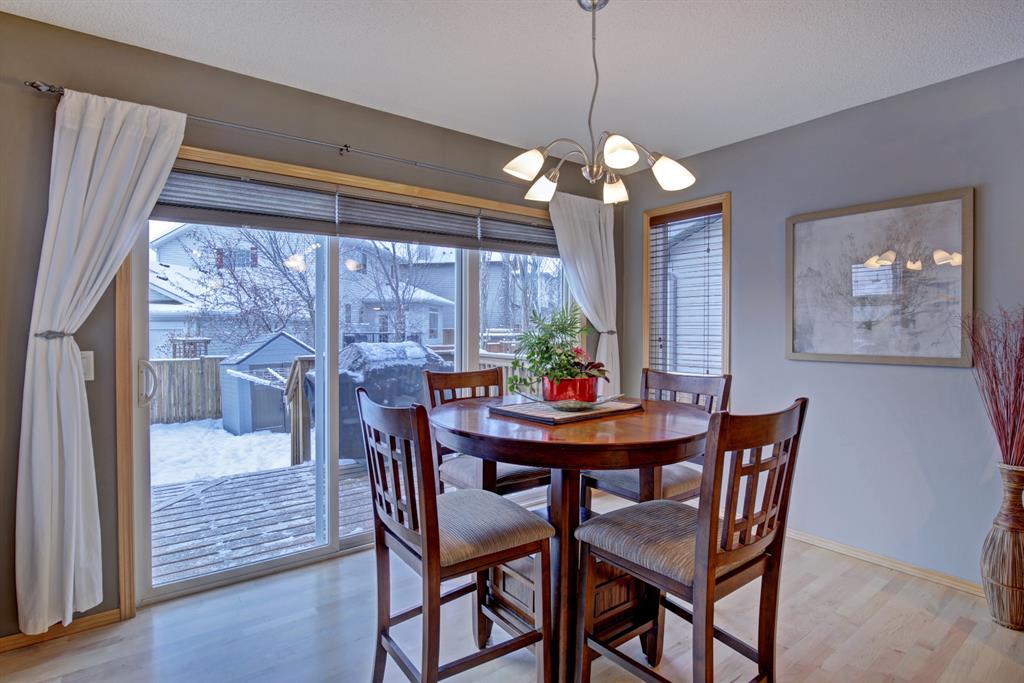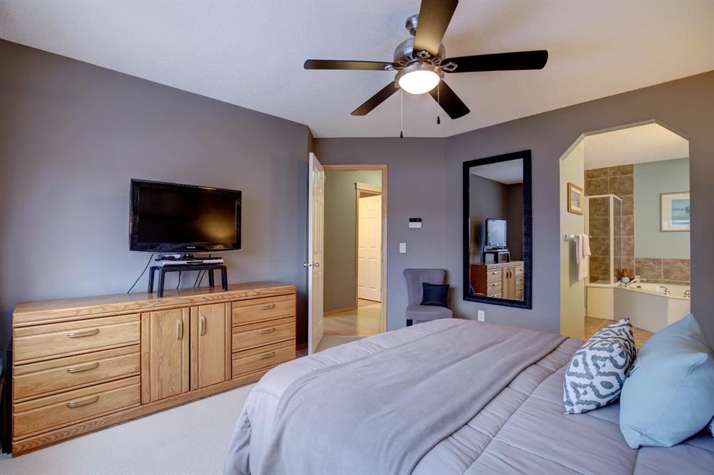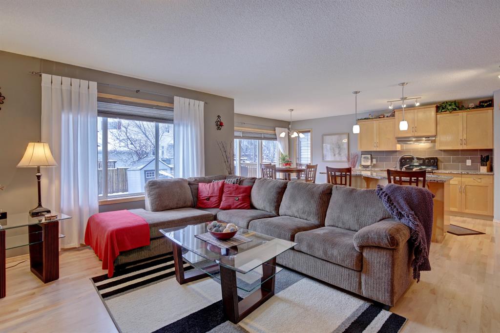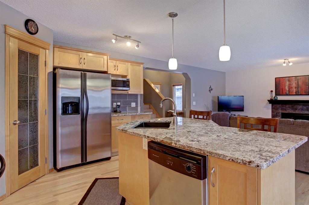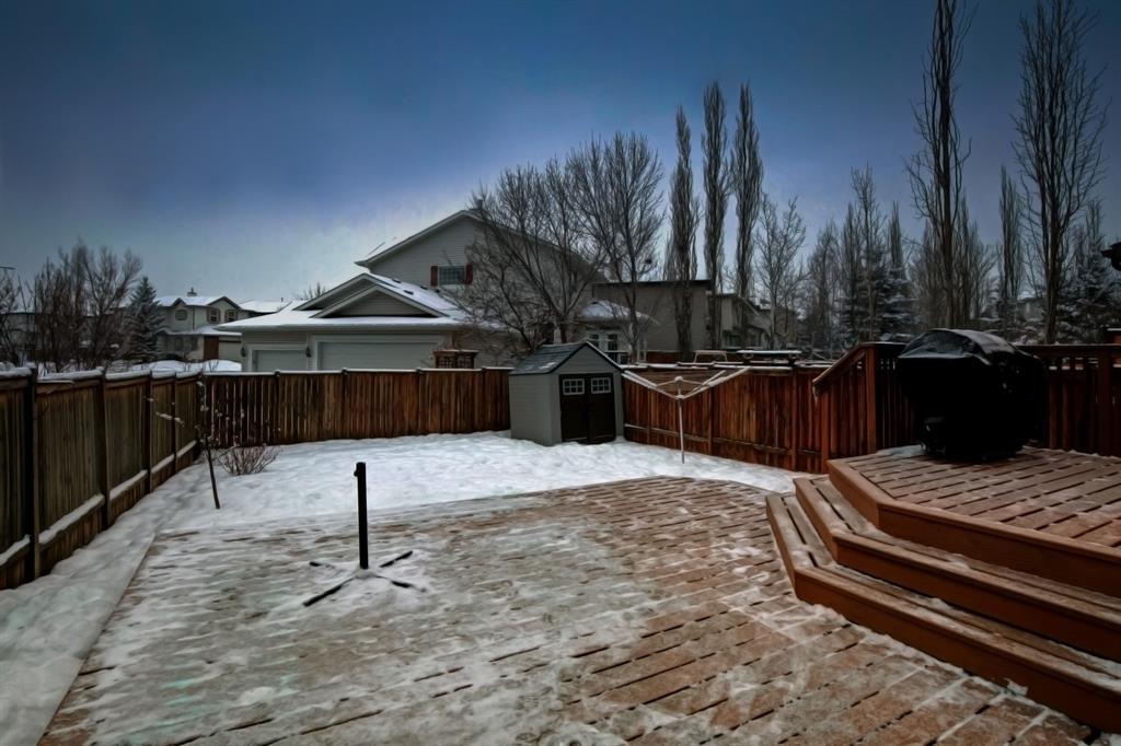 HOME SWEET HOME! Welcome to this terrific, exquisitely upgraded 2 storey home situated on a spacious lot on a desirable, family friendly cul-de-sac in the sought-after community of Tuscany! This stylish, fully developed home offers 4 bedrooms, 3.5 bathrooms, central air conditioning and 2,605 SQFT of stunning, contemporary living space. Inside, you are greeted by the sunny living room highlighted by a focal point gas fireplace with mantle, 2 piece bathroom, formal dining room and a laundry room with built-in cabinets. The gourmet chef’s kitchen features gleaming granite countertops/ beautiful center island with room for seating, maple cabinetry, stainless steel appliances and a convenient, walk-in corner pantry. Upstairs, you will find a versatile bonus room/ family room perfect for entertaining, 3 generous sized bedrooms and a 4 piece bathroom. The dreamy king sized master retreat comes complete with a beautiful wall accent feature, massive walk-in closet perfect for all your needs, and a spa-like 4 piece ensuite highlighted by a huge, cozy soaker tub. Both upper levels have maple hardwood flooring. The fully finished basement boasts a recreation/ media room with custom built-ins niches, spacious 4th bedroom and full bathroom. Completing this home is new shingles (2019), new furnace (2018) and an oversized double garage with a workbench/ workshop area, high ceilings, side door access and tons of storage space. The large, fully fenced yard with a 2 tiered deck is roughed in for a hot tub and gives you all the privacy that you desire. Desirably located with MOUNTAIN and COP views, close to a bus stop/ LRT, schools, shopping, parks& major roadways. MUST VIEW! Call today for your private viewing!