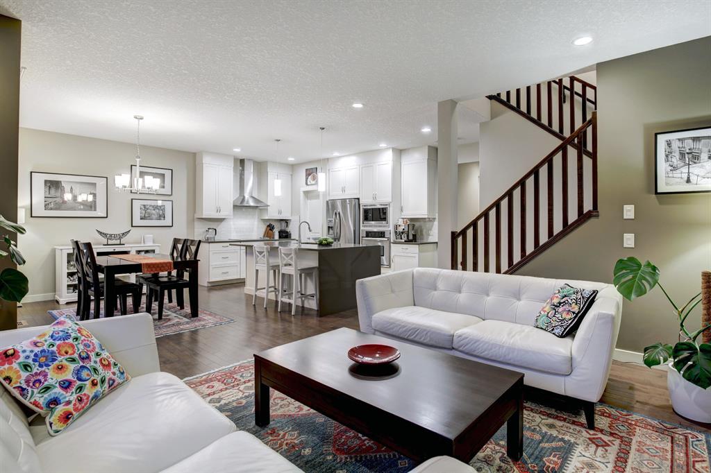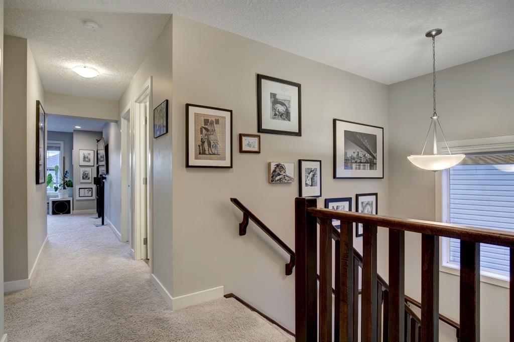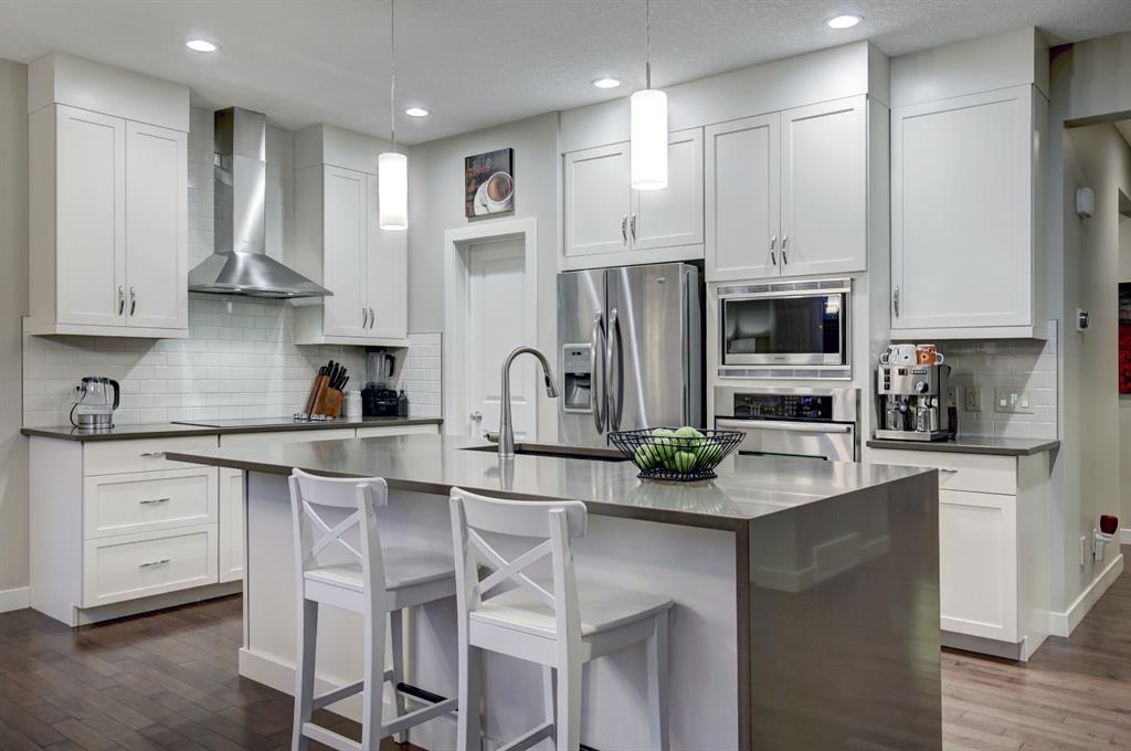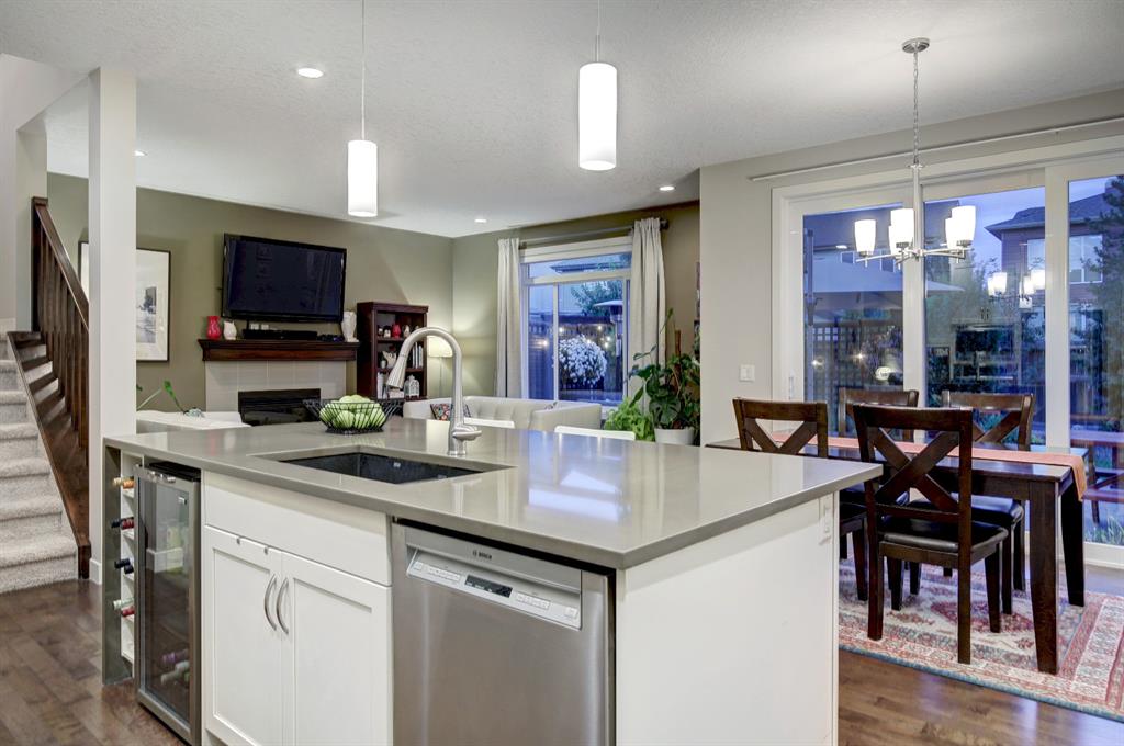 HOME SWEET HOME! This is the dream home you have been searching for! Welcome to this spectacular, extremely well maintained, fully finished, 3 bedroom + den, 3.5 bathroom family home in the PREMIERE LAKE COMMUNITY of Auburn Bay! This home is truly the full package! Complete with incredible curb appeal and contemporary farmhouse style finishing’s throughout its 3,046 total SQFT of open concept living space! Once inside you are greeted by incredible finishing’s and upgrades including gleaming hardwood flooring, gourmet chef’s kitchen featuring premium stainless steel appliances, built-in oven and cooktop stove, quartz countertops, stunning centre island with a wine fridge, built-in wine rack, ample cabinet space and a corner pantry. Additional main floor features include a bright dining room with access to the backyard retreat, spacious living room highlighted by a focal point gas fireplace with a mantle, office with french doors, 2 piece bathroom and a mud room. Upstairs you will find the dreamy master retreat with a large walk-in closet and spa-like 5 piece ensuite with double vanity sinks, oversized shower and a soaker tub. Two generous sized bedrooms, laundry room, 4 piece bathroom and a massive family room with terrific views, a stylish accent wall and a sliding barn door complete this floor. The fully finished basement is the perfect space for entertaining with a modern second kitchen/bar with stainless steel appliances, (wine fridge, dishwasher and lots of cabinet space), cozy living room with a contemporary fireplace, huge den and a 3 piece bathroom with in floor heating. The large fully fenced backyard offers you your own tranquil oasis with a fire pit, large deck and partial pergola, maximizing your privacy. Other upgrades include Hardy Board Exterior, central air, heated bathroom floor, Luxury Plank Flooring, knock down ceilings, large double garage and Hunter Douglas Blinds. Your new home is Perfectly located, just a quick walk to Auburn Bay Lake and the beach (with many year-round amenities to enjoy including swimming, fishing, ice fishing, boating, playgrounds, recreational facilities, tennis courts, beach volleyball courts and more) and Steps from shopping, schools, restaurants, public transportation, close access to Fish Creek Park and major roadways. Home shows true pride of ownership. MUST VIEW, book your private viewing today!