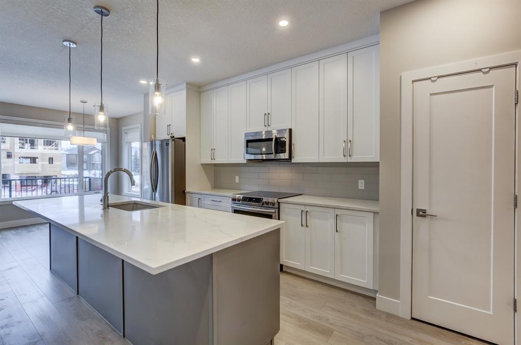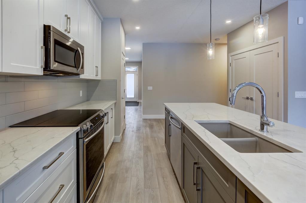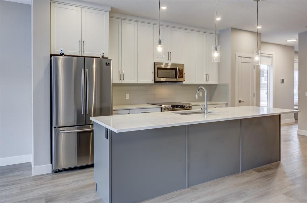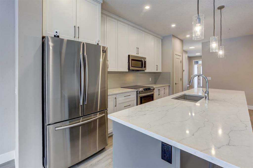 HOME SWEET HOME! Indulge in maintenance free living in this spectacular, WALKOUT 2 storey Townhome situated in in the premiere NW community of Royal Oak in the ‘Ravines of Royal Oak’! This stunning home was custom-built in 2019 and offers 4 bedrooms, 3.5 bathrooms, 2,457 SQFT of exquisitely upgraded living space throughout, charming curb appeal, a double attached garage and an unmatched location bordered by a pair of serene ponds on the West and the Mitra Natural Ravine Park with walking trails on the East. Walking in you will be instantly blown away by the contemporary, open concept layout loaded with main floor premium vinyl plank flooring, luxury finishing’s, 9 foot ceilings, triple-pane, argon filled low-e, aluminum clad windows, central air conditioning and luxury finishing’s. The main floor offers a formal dining area, a spacious, sun drenched living room perfect for entertaining friends and family, 2 piece bath and the gourmet chef’s kitchen of your dreams complete with breathtaking quartz countertops, a massive island with a breakfast bar to enjoy your morning coffee, ample cabinet space and a premium stainless steel package with an amazing, induction stove. Heading upstairs you will find two gorgeous generous sized bedrooms, a 4 piece bathroom and a convenient laundry room. The highlight of this is floor is your magnificent master bedroom showcasing a dreamy spa-like 5 piece ensuite with vanity sinks, a cozy soaker tub to wind down after a long day, private shower and a huge walk-in closet with built-in shelving. The WALKOUT basement boasts a fourth bedroom, large living room that would be perfect for a recreation/games room/play room (RI wet bar) for your growing family, full bathroom and a utility room that will accommodate all of your storage needs. Outside, there is a spacious deck to enjoy your tranquil views and late night summer sunsets, as well as a spacious backyard. Enjoy the perks of maintenance free living with affordable condo fee’s that include snow removal, yard/ landscaping maintenance, exterior maintenance, building insurance, garbage/recycling/composting services and much more. Located steps from all the major amenities you could desire including the LRT station, K-03 & 04-09 schools, 4 major shopping centres and easy access to Stoney, Crowchild Trail and a quick escape to the Mountains. This home is a MUST VIEW, book your private viewing today!