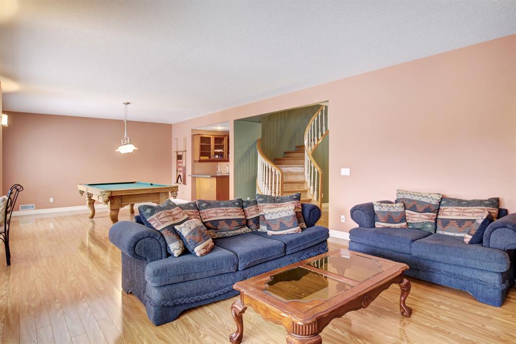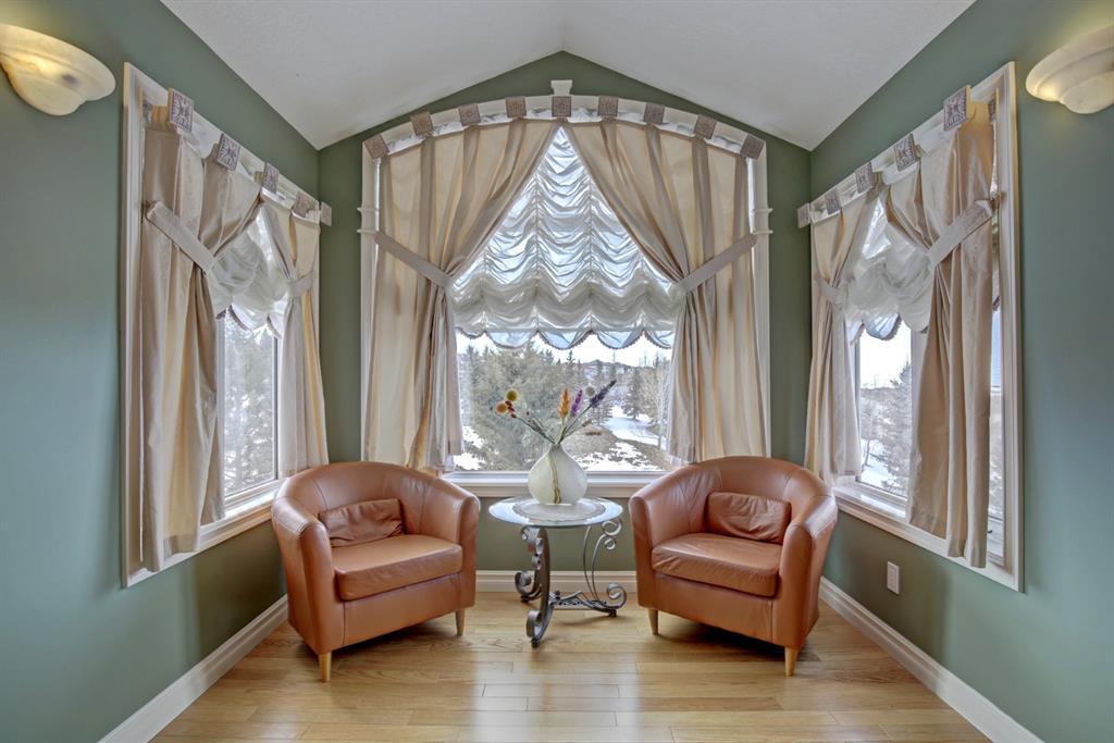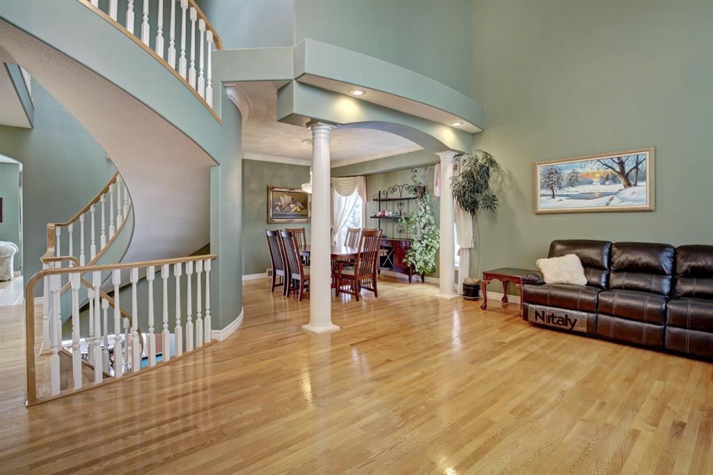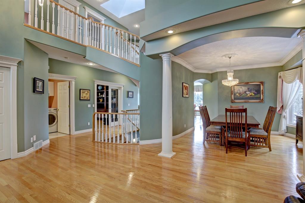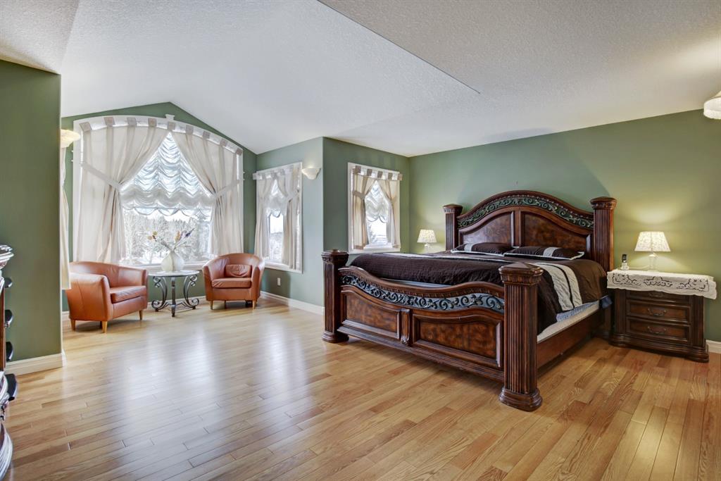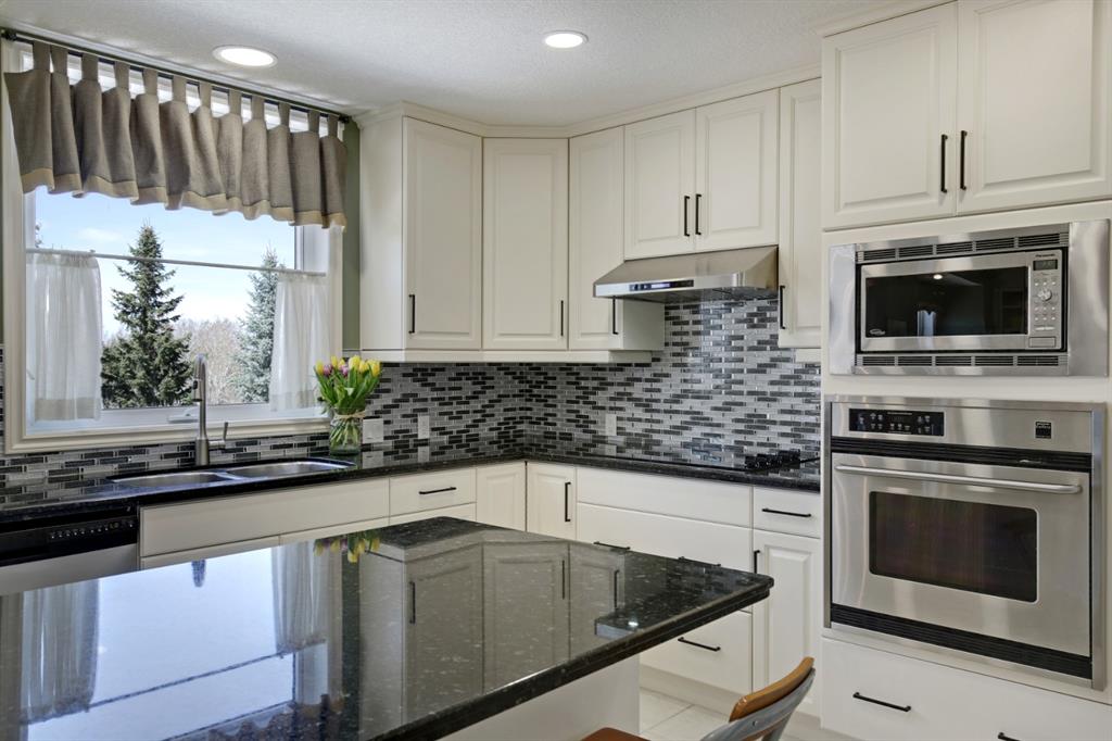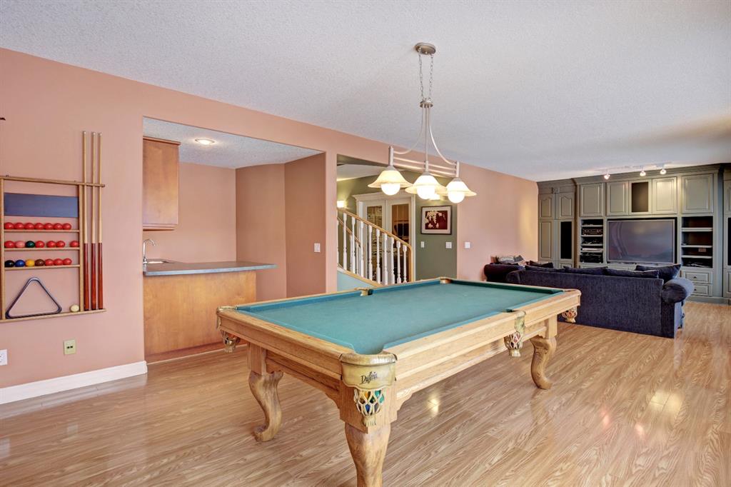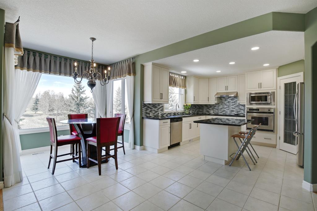 HOME SWEET HOME! LOCATION! LOCATION! LOCATION! Welcome to this remarkable estate home featuring a FRESHLY UPGRADED kitchen located in an unbeatable, exclusive location backing on to The Hamptons Golf Club! This beautiful family home offers exquisite curb appeal, beautiful pride of ownership, 5 bedrooms, 3.5 bathrooms, 4,451 total SQFT of luxury living space, a TRIPLE CAR GARAGE and panoramic views of Hole 13. Stepping inside you’re greeted by the 18 feet soaring ceilings and newer gleaming oak hardwood flooring throughout. The main floor features an office with gorgeous built-ins, bright living room with massive windows and a laundry room with a sink and 2-piece bathroom. Moving past the elegant spiral staircase leads you into the family room containing a stylish gas fireplace, convenient breakfast nook, and the gourmet chef’s kitchen that has been RECENTLY UPDATED with a stunning new backsplash, exquisite pot lots and freshly updated solid cherry wood cabinetry. The kitchen also comes complete with a stunning center island, granite countertops, corner pantry, high-end appliances and access to the deck to bask in spectacular views. The upstairs boasts newer Oak hardwood, three generous sized bedrooms, one with a walk-in closet, 5-piece bathroom and the extraordinary master retreat with french doors, spectacular views overlooking the golf course, walk-in closet and a spa-like 5-piece ensuite with double vanity sinks and a comforting jetted tub, perfect for relaxing. The fully finished walkout basement is home to the massive recreation/games room with built-ins, newer laminate flooring, billiards, wet bar entertaining area with a fridge, 1 more spacious bedroom, a huge den that can be converted into another bedroom, 4-piece bathroom, plentiful storage space and a utility room with 2 furnaces, 2 hot water tanks and 2 humidifiers. Beautiful landscaping in the front and back with a massive deck for enjoying those beautiful summer days and taking in the views. Steps to Nose Hill park, plentiful shopping, public transportation, schools, major roadways and other amenities. Call today to make this your new dream HOME SWEET HOME!