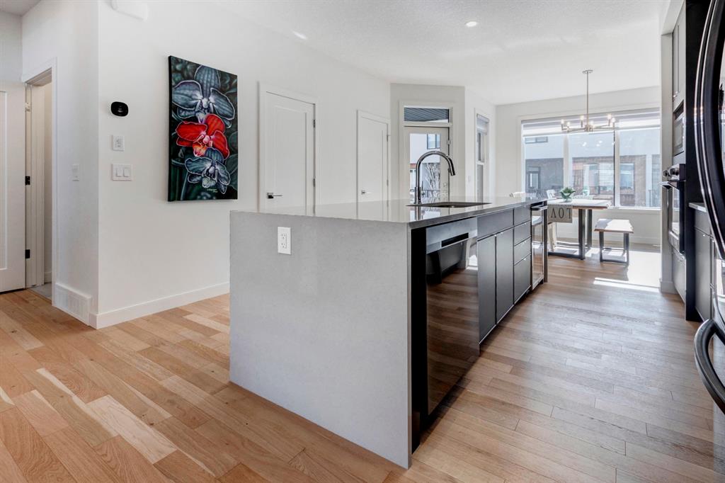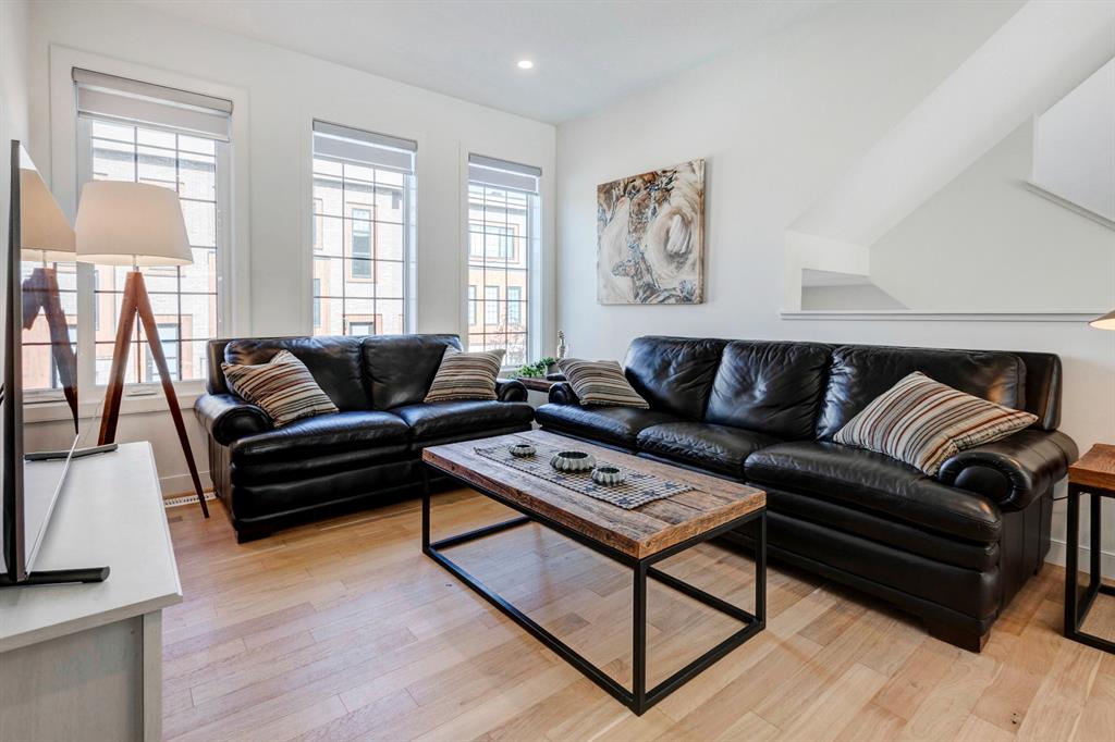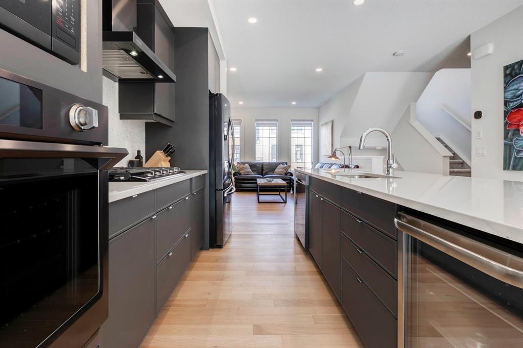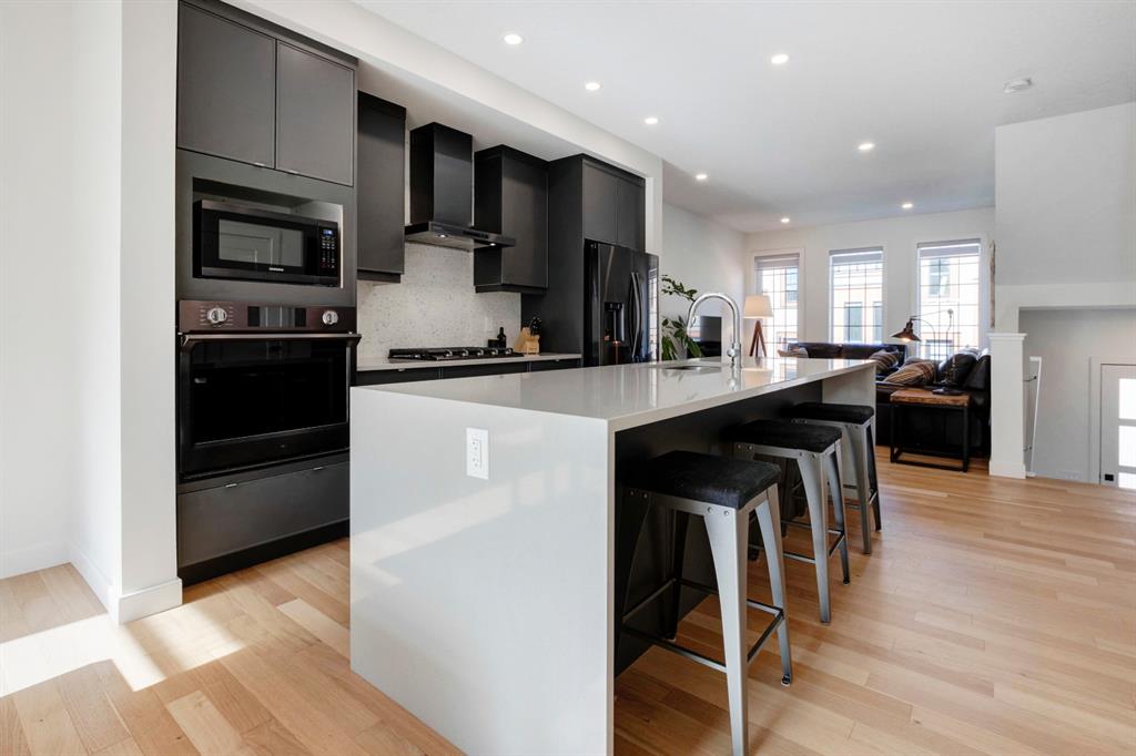 HOME SWEET HOME! AMAZING VALUE! Welcome to this spectacular, New York style Brownstone Townhome, custom-built in 2020 by Madison Ave Group, that is situated in the new and exciting community of Greenwich in sought-after Greenwood. This luxurious “PERRY MODEL” home has only been lightly lived in for a few months and SHOWS BRAND NEW! You will be blown away with the lavish interiors designed by Haus of Bryant Interior Design. This dreamy home offers an open concept floor plan with 3 bedrooms (2 master retreats), two 4 piece ensuites, two 2 piece bathrooms and 1,637 contemporary SQFT of living space. Highlight features include a gourmet chef’s kitchen with gleaming quartz countertops with a waterfall edge, upgraded chimney style hood-fan, premium, high efficiency stainless steel appliance package with a built-in oven, gas cooktop, & built-in microwave, beautiful kitchen cabinetry with soft close doors, full height backsplash, spacious kitchen island with a breakfast bar and a convenient walk-in pantry. Additional upgrades include AIR CONDITIONING, blinds/window coverings, built-ins, 9 feet high main level ceilings, gorgeous engineered hardwood floors, massive triple-paned windows throughout soaking the home in natural sunlight and a high efficiency furnace. The private south facing deck is perfect for entertaining and basking in the breathtaking views. There is also a DOUBLE ATTACHED GARAGE for all of your parking needs. This UNRIVALED LOCATION is steps from the future Calgary Farmers Market and close to Canada Olympic Park/Winsport, Bowness Park, Calgary Climbing Centre, Crowfoot Centre, Market Mall, other boutique shopping, restaurants, public transportation, off leash dog parks, easy access to the mountains/Canmore/Banff and a quick drive to Downtown Calgary. Greenwich offers the maintenance free, luxury lifestyle you have been searching for. MOTIVATED SELLER. LISTED $40,000 BELOW CURRENT COST TO REBUILD, NO GST AND NO BUILDER LEVY. THERE IS A WARRANTY IS IN PLACE AND THERE ARE OVER $30,000 IN UPGRADES (including custom blinds and air conditioning). READY FOR IMMEDIATE POSSESSION!!!!! Book your private viewing today!
