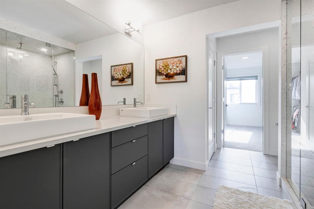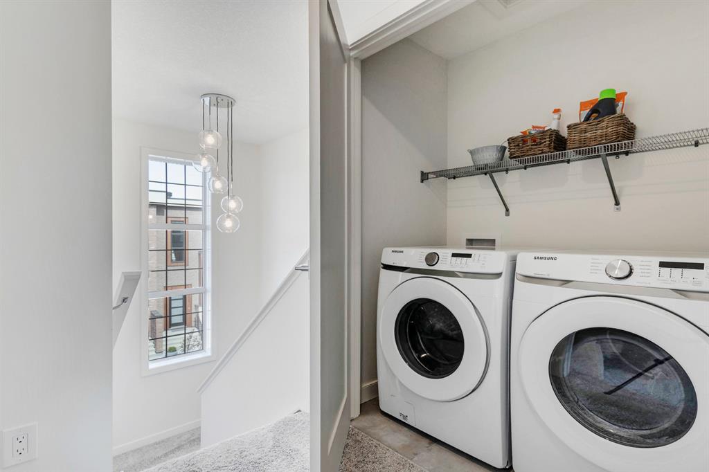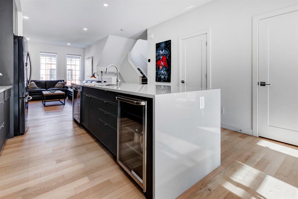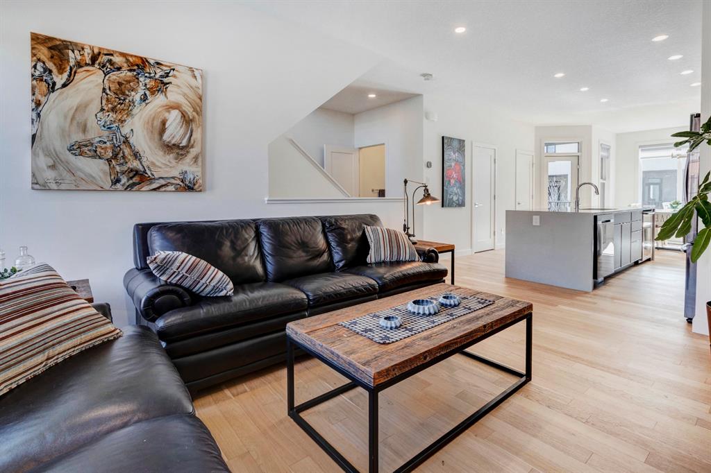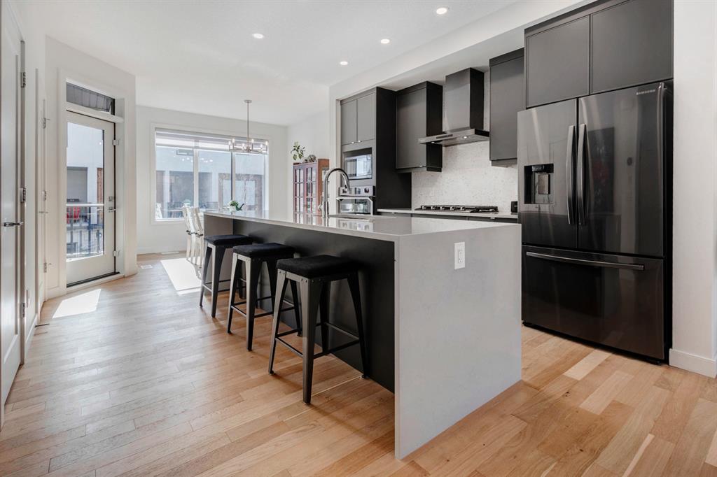 HOME SWEET HOME! AMAZING VALUE! Welcome to this spectacular, New York style Brownstone Townhome, custom-built in 2020 by Madison Ave Group, that is situated in the new and exciting community of Greenwich in sought-after Greenwood. This luxurious “PERRY MODEL” home has only been lightly lived in for a few months and SHOWS BRAND NEW! You will be blown away with the lavish interiors designed by Haus of Bryant Interior Design. This dreamy home offers an open concept floor plan with 3 bedrooms (2 master retreats), two 4 piece ensuites, two 2 piece bathrooms and 1,637 contemporary SQFT of living space. Highlight features include a gourmet chef’s kitchen with gleaming quartz countertops with a waterfall edge, upgraded chimney style hood-fan, premium, high efficiency stainless steel appliance package with a built-in oven, gas cooktop, & built-in microwave, beautiful kitchen cabinetry with soft close doors, full height backsplash, spacious kitchen island with a breakfast bar and a convenient walk-in pantry. Additional upgrades include AIR CONDITIONING, blinds/window coverings, built-ins, 9 feet high main level ceilings, gorgeous engineered hardwood floors, massive triple-paned windows throughout soaking the home in natural sunlight and a high efficiency furnace. The private south facing deck is perfect for entertaining and basking in the breathtaking views. There is also a DOUBLE ATTACHED GARAGE for all of your parking needs. This UNRIVALED LOCATION is steps from the future Calgary Farmers Market and close to Canada Olympic Park/Winsport, Bowness Park, Calgary Climbing Centre, Crowfoot Centre, Market Mall, other boutique shopping, restaurants, public transportation, off leash dog parks, easy access to the mountains/Canmore/Banff and a quick drive to Downtown Calgary. Greenwich offers the maintenance free, luxury lifestyle you have been searching for. MOTIVATED SELLER. LISTED $40,000 BELOW CURRENT COST TO REBUILD, NO GST AND NO BUILDER LEVY. THERE IS A WARRANTY IS IN PLACE AND THERE ARE OVER $30,000 IN UPGRADES (including custom blinds and air conditioning). READY FOR IMMEDIATE POSSESSION!!!!! Book your private viewing today!