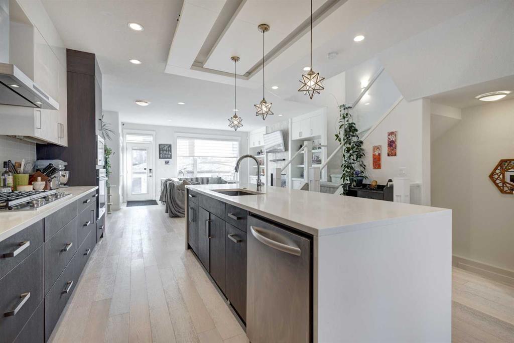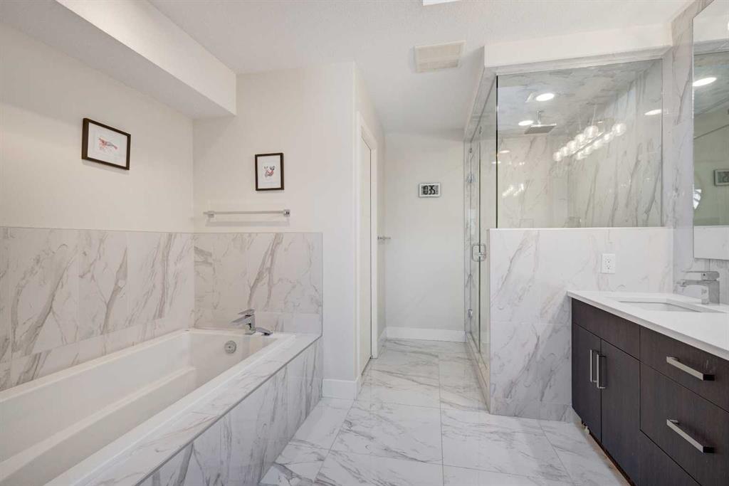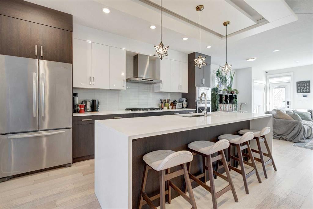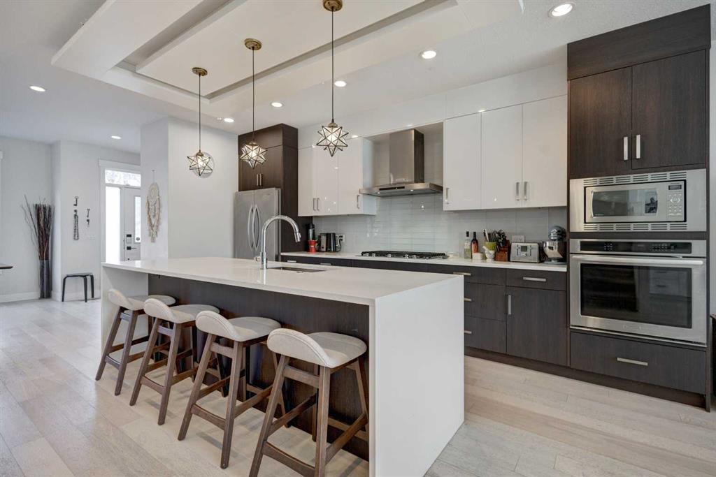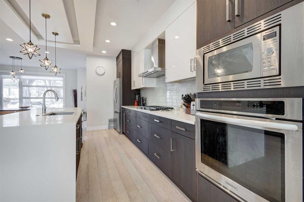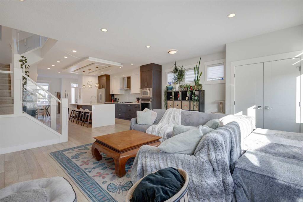 HOME SWEET HOME! Welcome to this spectacular, fully developed 2-storey custom-built home situated in the sought-after inner-city NW community of Highland Park with charming curb appeal. This executive home offers 4 bedrooms, 3.5 bathrooms, 2,816+ SQFT of luxurious living space, a double detached garage and CENTRAL AIR CONDITIONING! Heading inside you will be impressed by the stunning, open concept floor plan with knockdown 9 foot ceilings, trendy engineered white oak hardwood flooring and sophisticated finishing’s throughout. The main floor boasts a sun-drenched living room with beautiful built-in cabinetry and a floor to ceiling, cozy gas fireplace, a bright dining area, spacious foyer, 2 piece vanity bathroom and the breathtaking, gourmet chef’s kitchen complete with stainless steel appliances with a built-in oven and gas cooktop, quartz countertops, huge quartz island with a convenient breakfast bar and pendant lights and a subway tile backsplash. Upstairs you will find the magnificent master retreat with vaulted ceilings, a massive walk-in closet with built-ins and a spa-like 5 piece ensuite with a private rainfall shower, double vanity sinks and a soaker tub. Completing the floor is 2 additional generous sized bedrooms, a 4 piece bathroom and a spacious laundry room. The fully finished basement offers a large family/recreation room with built-ins and a wet bar, a 4th bedroom, another full bathroom and tons of storage space for all of your needs. Outside, there is a fully fenced, landscaped backyard with a concrete patio space perfect for BBQing and entertaining, a double detached garage and a wonderful front patio. Perfectly located in an extremely desirable location, steps from schools, pathway system, parks, popular restaurants and bars, shopping, public transportation, easy access to Downtown and major roadways. Don’t miss out on this GEM, book your private viewing today!