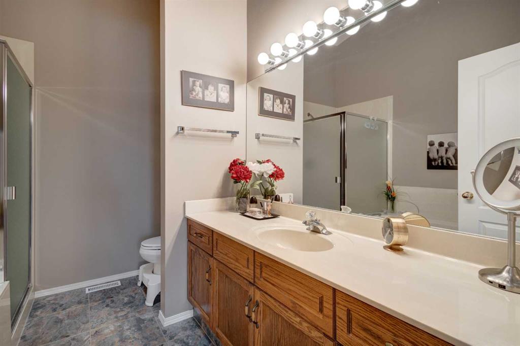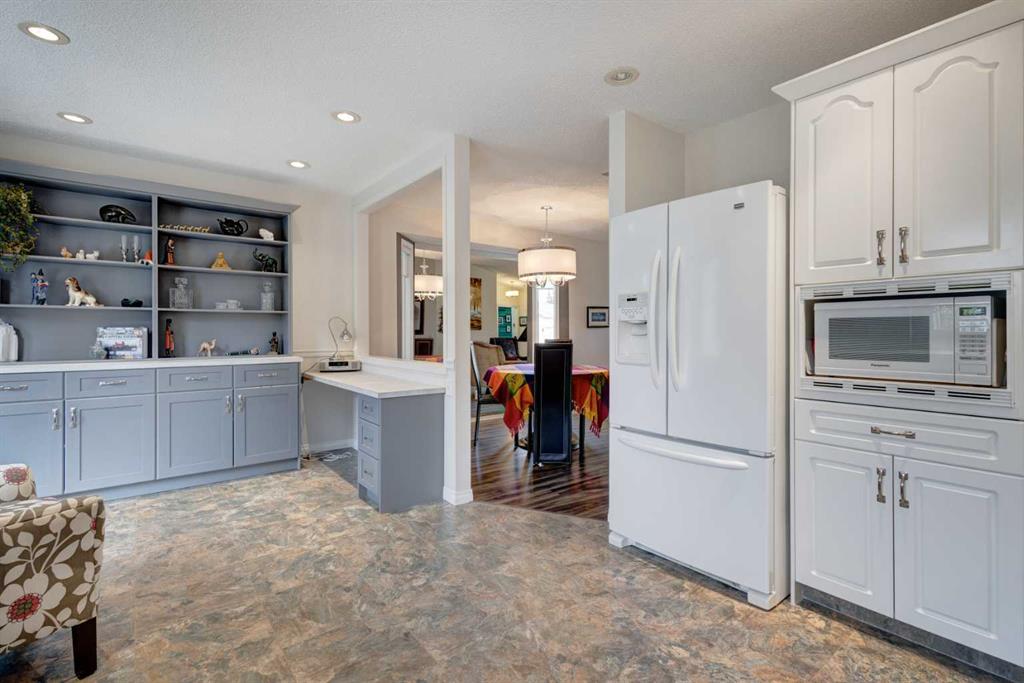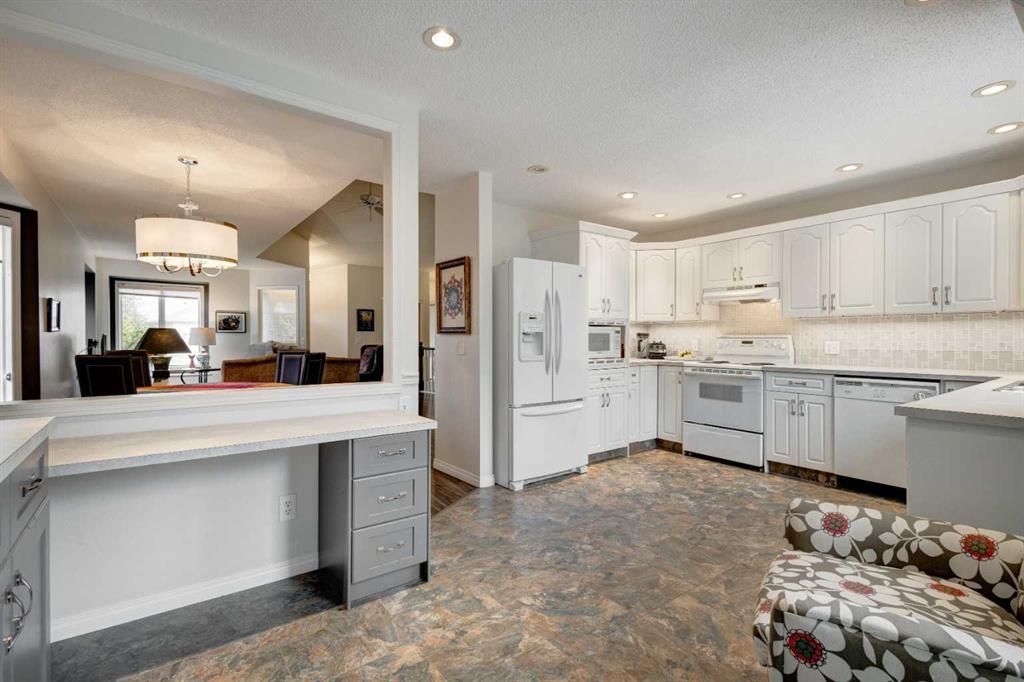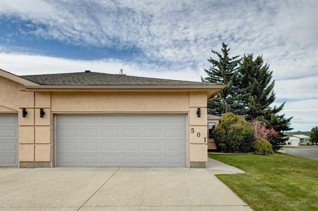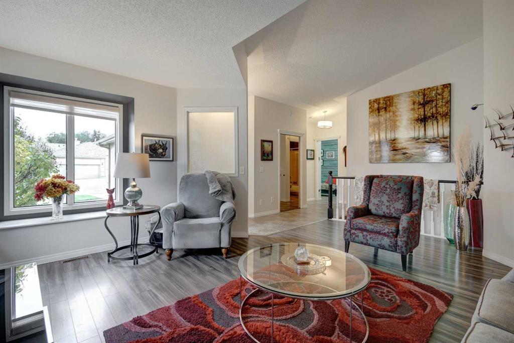 HOME SWEET HOME! Enjoy maintenance free, Golf Course living at it’s finest in this updated, villa style bungalow situated in the charming and tranquil town of High River backing on to a greenspace and the Highwood Golf Course. This beautifully renovated, fully finished home offers 3 bedrooms, 3 bathrooms, 2,708+ SQFT of wonderfully maintained living space, a double attached garage and amenities including exterior maintenance, landscaping and snow removal. Heading inside you will fall in love with the stylish finishing’s including cathedral ceilings, skylight and gleaming vinyl plank flooring. The flawless open concept floor plan features a foyer, large living room flooded in natural sunlight, formal dining area, spectacular chef’s kitchen fully equipped with appliances, tons of cabinet space and a built-in office nook. Completing the floor is a convenient laundry room, a generous sized bedroom that could accommodate a home office, lovely 4 piece bathroom and the magnificent master bedroom with a spa-like 4 piece ensuite that is highlighted by a soaker tub which is a perfect place to unwind after a busy day. Downstairs, you will find the basement that was fully renovated in 2013 boasting a 3rd bedroom, another full bathroom, ample storage space, a recreation area and a massive living room that’s perfectly complimented by a cozy, chic fireplace. HOME UPDATES include a new hot water tank and sump pump (2022), air conditioner and furnace (2009), garage accessibility ramp, some updated windows, front door, new flooring and renovated bathrooms. Outside, there is a huge deck to enjoy your peaceful oasis with greenspace and golf course views, a backyard that’s perfect for pet owners and a double attached front garage with 2 additional driveway spots. This dream location is in a quiet cul-de-sac close to parks, shopping, schools, restaurants and a close drive to Calgary, the foothills and to the mountains for all of your outdoor adventures. Don’t miss out on this GEM, book your private viewing today!