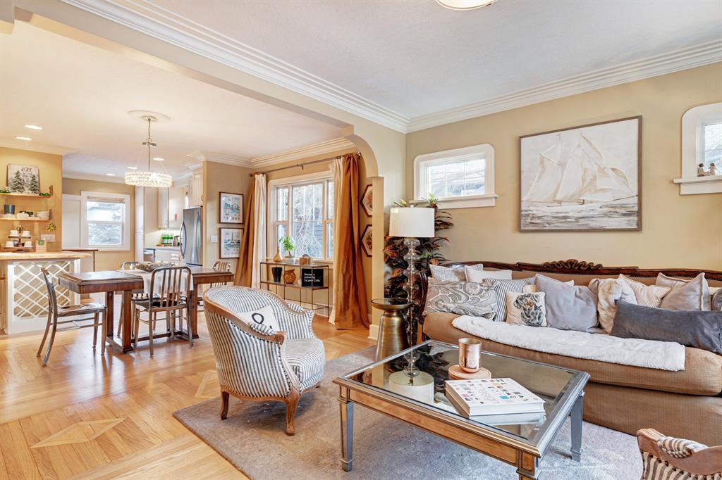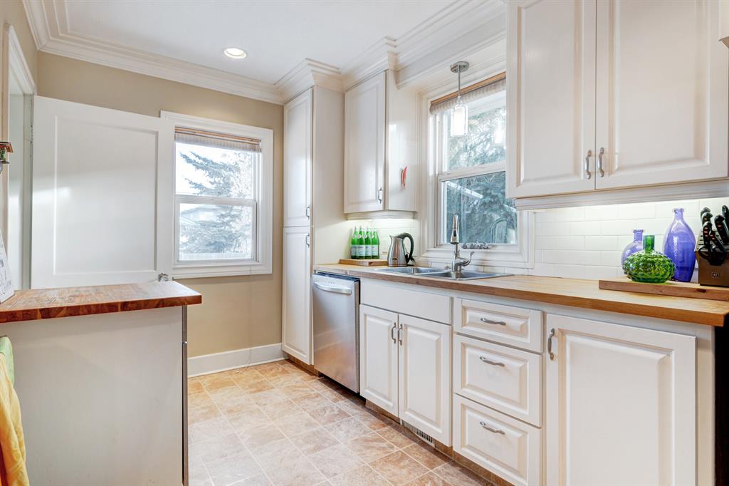 HOME SWEET HOME! Calling all investors! Welcome to this stunning, exceptionally updated home with an (illegal) SUITE in the heart of upper Ogden, just a short walk to the River Ridge. As soon as you walk in the door you are greeted with that cozy family relaxing feel that makes you just want to stay a little bit longer! Perhaps it’s the private front hedge and the welcoming covered front porch that sets the tone. Enjoy your 2 separate living spaces (Live up/Rent Down) and the long term potential of this 50 foot frontage lot. Upstairs you will find 2 good sized bedrooms, dressing closet, 4 piece bathroom and the modern, open plan kitchen with butcher block countertops, butcherblock island/ eating bar and stainless steel appliances, formal dining room and the cozy living room drenched in natural sunlight Downstairs you will find 2 good sized bedrooms, a 4 piece bathroom, a spacious kitchen, dining room, large living room and a shared utility, storage, laundry Room. Outside, the yard is fully landscaped and fenced with a single detached garage, mature trees, hedge, front porch and an oversized deck. Upgrades and additional highlight features of this home include plumbing, wiring (see supplements), recent shingles, kitchen (wood counters and stainless appliances upstairs), bathrooms, windows, crown molding, knock down ceiling, modern lighting, Custom Hard wood Flooring (original and beautifully refurbished) and 2 cozy electric fireplaces. This lovely home is located a short walk to the new green line LTR, close to parks, schools, bike and river pathways, swimming pool, arena, shopping, major roadways (short drive to both Glenmore and Deerfoot Trails and Deerfoot Meadows Town Centre) and all other amenities you could desire. Don’t miss out on this excellent opportunity, book your private viewing of this GEM today!
