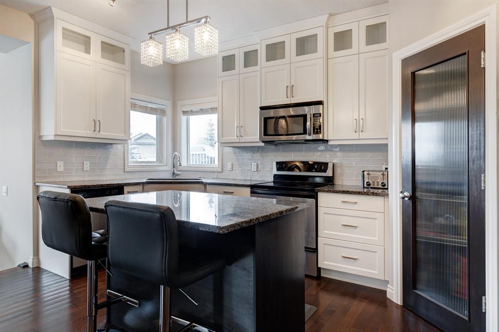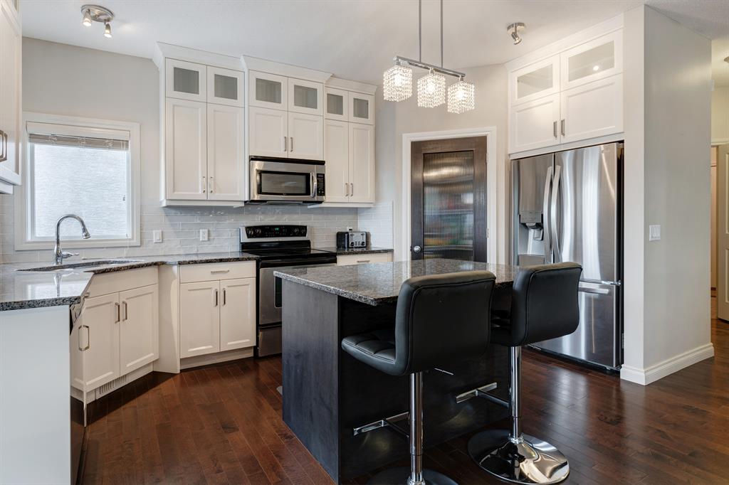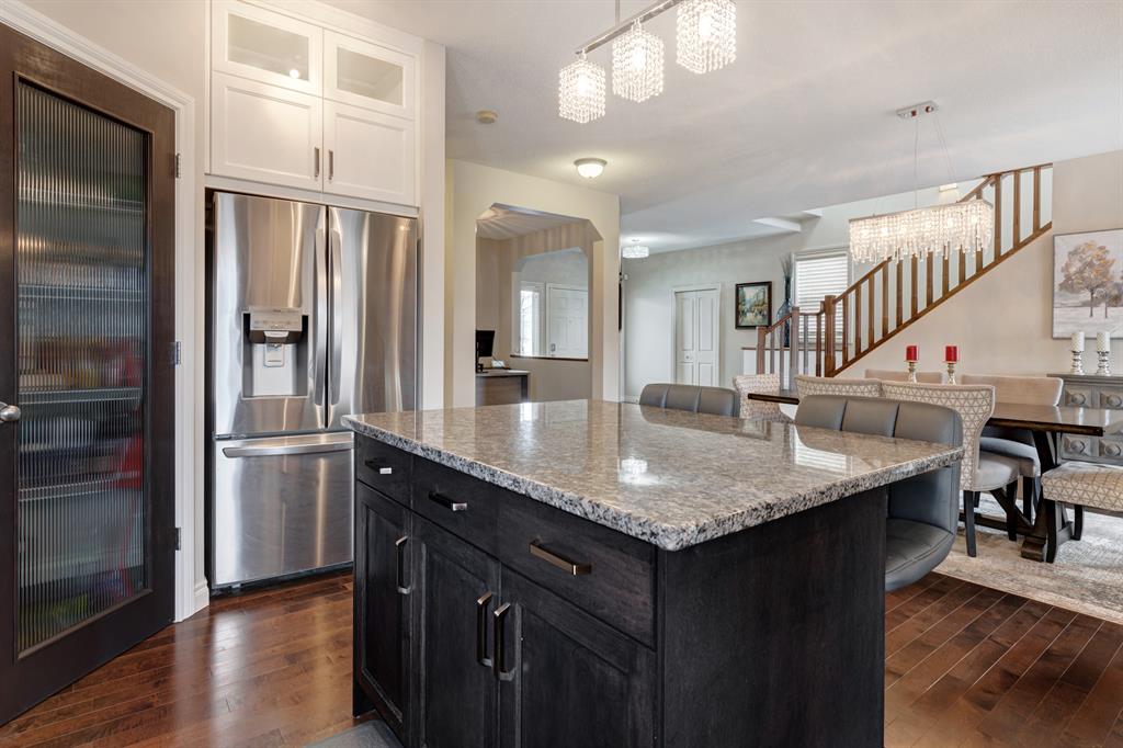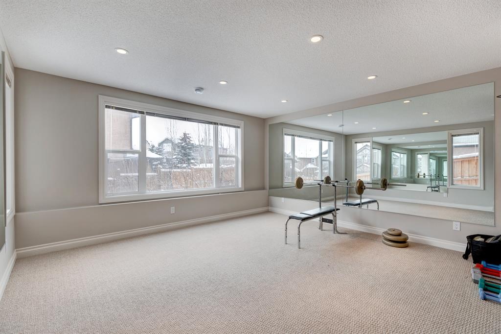 HOME SWEET HOME! Welcome to this meticulously maintained, stunningly upgraded, custom-built executive WALKOUT home nestled on a quiet crescent in prestigious Aspen Woods steps from Aspen Landing! This elegant estate home offers 4 bedrooms, 3.5 bathrooms, central AC and a beautifully appointed layout offering 3,497+ SQFT of luxury living space throughout. Upon entering this home you are greeted by the gleaming maple hardwood flooring, sophisticated finishing’s, crown mouldings and 9 foot ceilings. The main floor offers a large open concept dining area connecting to the convenient home office, spacious breakfast nook, laundry room, 2 piece vanity, sun-drenched living room showcasing a focal point, cozy double sided stone fireplace and the gourmet kitchen perfect for the home master chef with premium stainless steel appliances, quartz countertops, quartz centre island with a breakfast bar, convenient walk-through pantry and ample cabinet space. Upstairs you will find two great-sized bedrooms, a full 4 piece bathroom, bonus room with vaulted ceilings that’s perfect for entertaining, and the magnificent master retreat complete with a huge walk-in closet and a spa-like 4 piece ensuite with a relaxing soaker tub and private shower. The fully developed walkout basement features an absolutely massive recreation/games/family room complimented by a gas fireplace, 4th bedroom, another 4 piece bathroom and all the storage space you could need. RECENT UPDATES include hardwood flooring in the den/office and family room, fridge, kitchen island and cabinets, light fixtures, and unused underground sprinklers. Outside, there is a partially covered stone patio, large deck and an exquisitely manicured, fully fenced west facing backyard. Incredible location steps from parks, playgrounds, schools, Aspen Landing, shopping, restaurants, Aspen LRT, close to Westside, major roadways and much more. Don’t miss out, book your private viewing today!