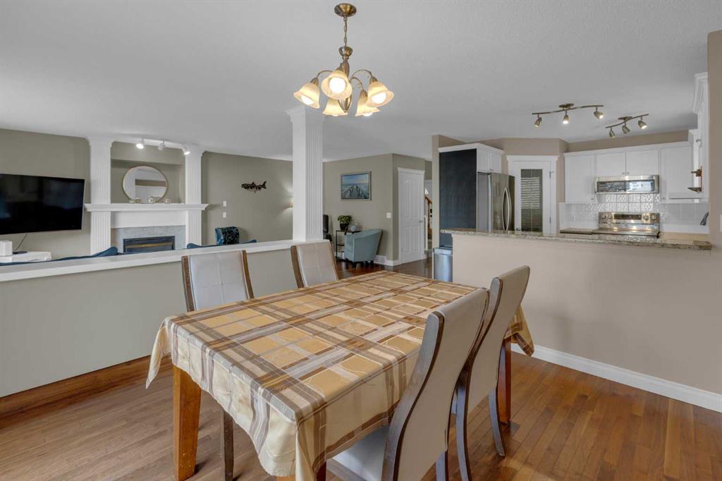 HOME SWEET HOME! Welcome to this freshly updated 2 storey family home situated in the extremely popular NW community of MacEwan perfectly located only 3 homes away from a playground/green space. This fully finished home is move-in ready offering 4 bedrooms, 3.5 bathrooms, 2,615+ SQFT of thoughtfully upgraded living space, central air conditioning and a double attached garage. Heading inside you will be amazed by the spacious, modern open concept floor plan with gleaming hardwood flooring. The main floor offers a 2 piece vanity bathroom, bright foyer, sun-drenched living room with built-in shelving and a cozy gas burning fireplace with a mantle, an expansive dining room, laundry room and the gourmet chef’s kitchen with granite countertops, large granite island with a raised eating bar, stainless steel appliances and a convenient walk-in pantry. Heading upstairs you will find 2 wonderful-sized bedrooms, a fantastic 4 piece bathroom and the primary retreat with a walk-in closet that’s perfect for all your needs and a spa-like 4 piece ensuite bathroom with a jetted soaker tub to relax after long days and a separate shower. The fully developed basement contains a 4th bedroom, another full bathroom, recreation room with built-ins, office/flex/fitness area and ample storage space. UPGRADES include AC (2022), new deck (2022), blown in attic insulation (2019), new carpet upstairs (2021), new fridge (2022), water heater (2017) , new roof and eavestrough (2025). Outside, you will find your double attached garage with additional driveway parking and the backyard offering your private oasis with a fully fenced, landscaped yard with a spacious deck. Unrivalled location with quick and easy access to shopping, the Winter Club, airport, parks, public transportation, schools and all other major amenities. Don’t miss out on this GEM, book your private viewing today!